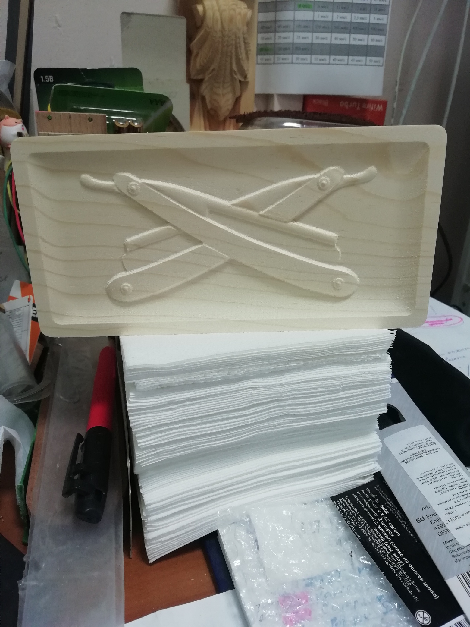И заодно нарезал рельеф/барельеф типа "барабан, пушка, знамя", но на тему бритв - 2а перекрещенных фрейма (ну псевдофрейма - Руслан сказал).