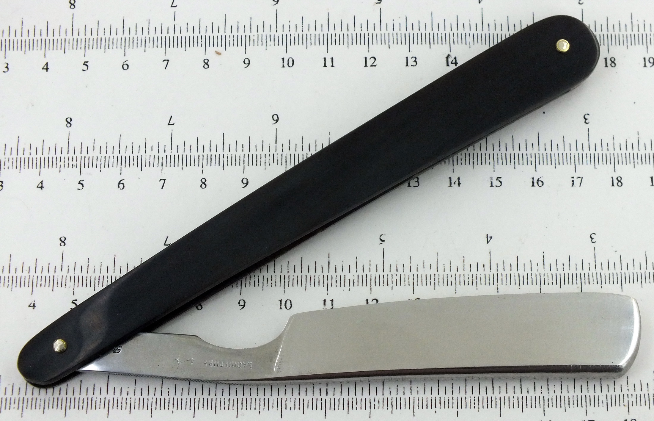 Еще одного француза протер тряпочкой. Клинок был "блестящий" после стальной кор-щетки. Половинка оправы и пины заменены. 32 года активно мусолю харю клинковой бритвой