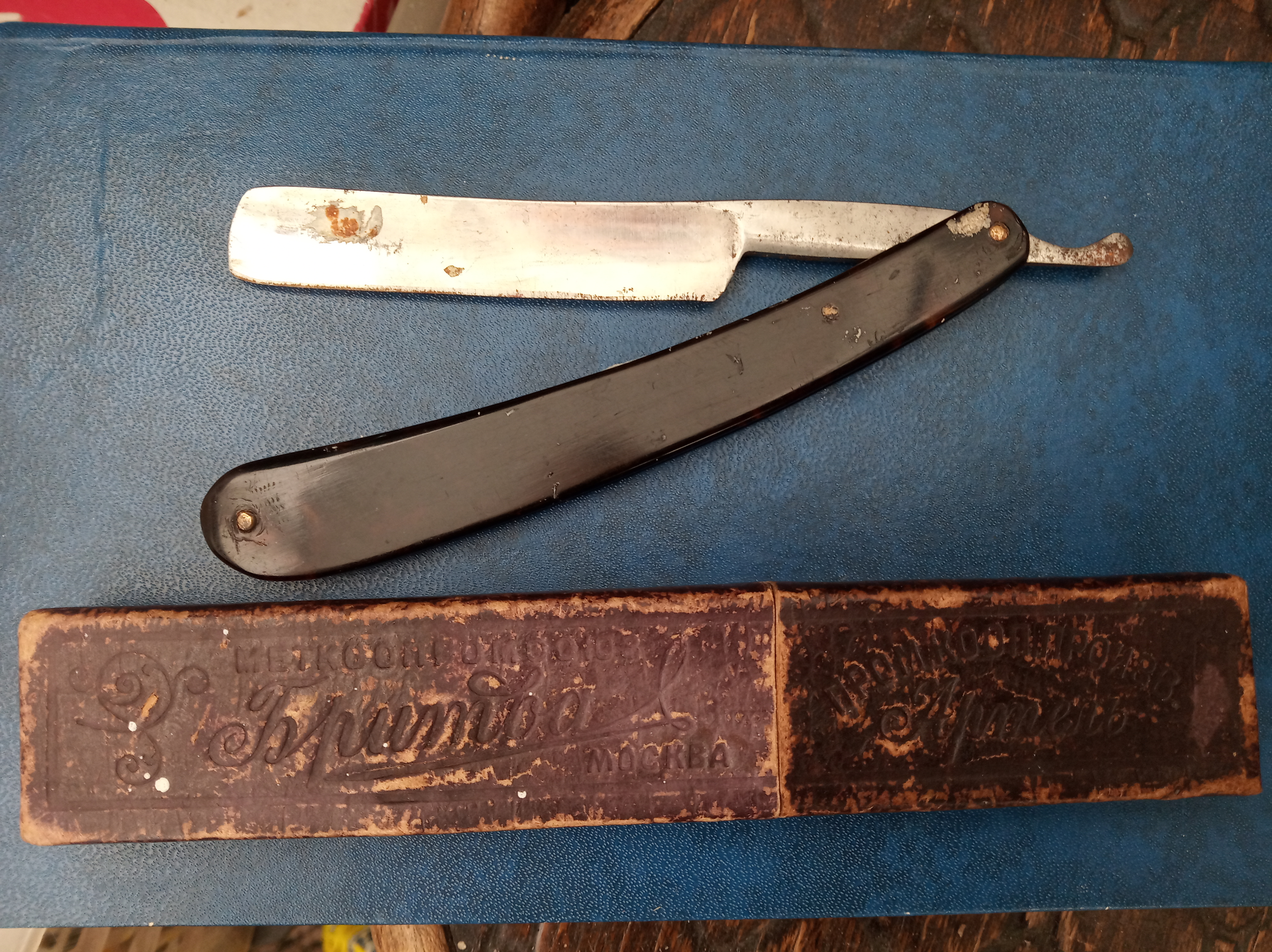 Бритва до... и после...Я бы клинок почистил получше, ну не совсем нравятся мне бритвы со "следами времени", а в целом хорошо получилось.
