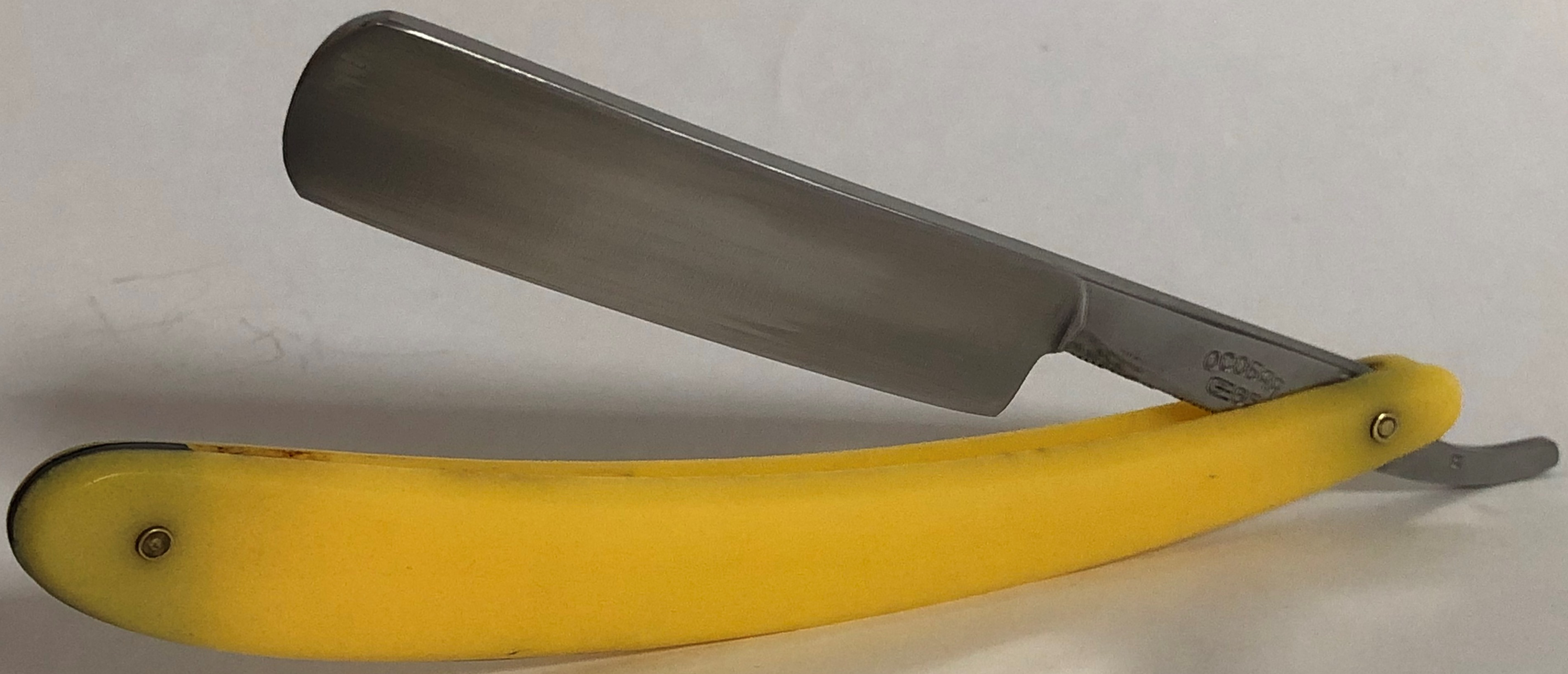 Бритва была разобрана, немного освежено полотно и умеренно отполировано,Пины поменял на немецкие втулки.Идеальная геометрия клинка:кромочка равномерна по всей длине. Сталь не твердая, что по идее должна выдавать достаточно мягкое и комфортное бритьё. Форма лезвия и размер бритвы мог бы очень хорошо подойти новичку.На мой субъективный взгляд, очень красивая бритва, с историей и в прекрасном состоянии. Заточена и готова к бритью.