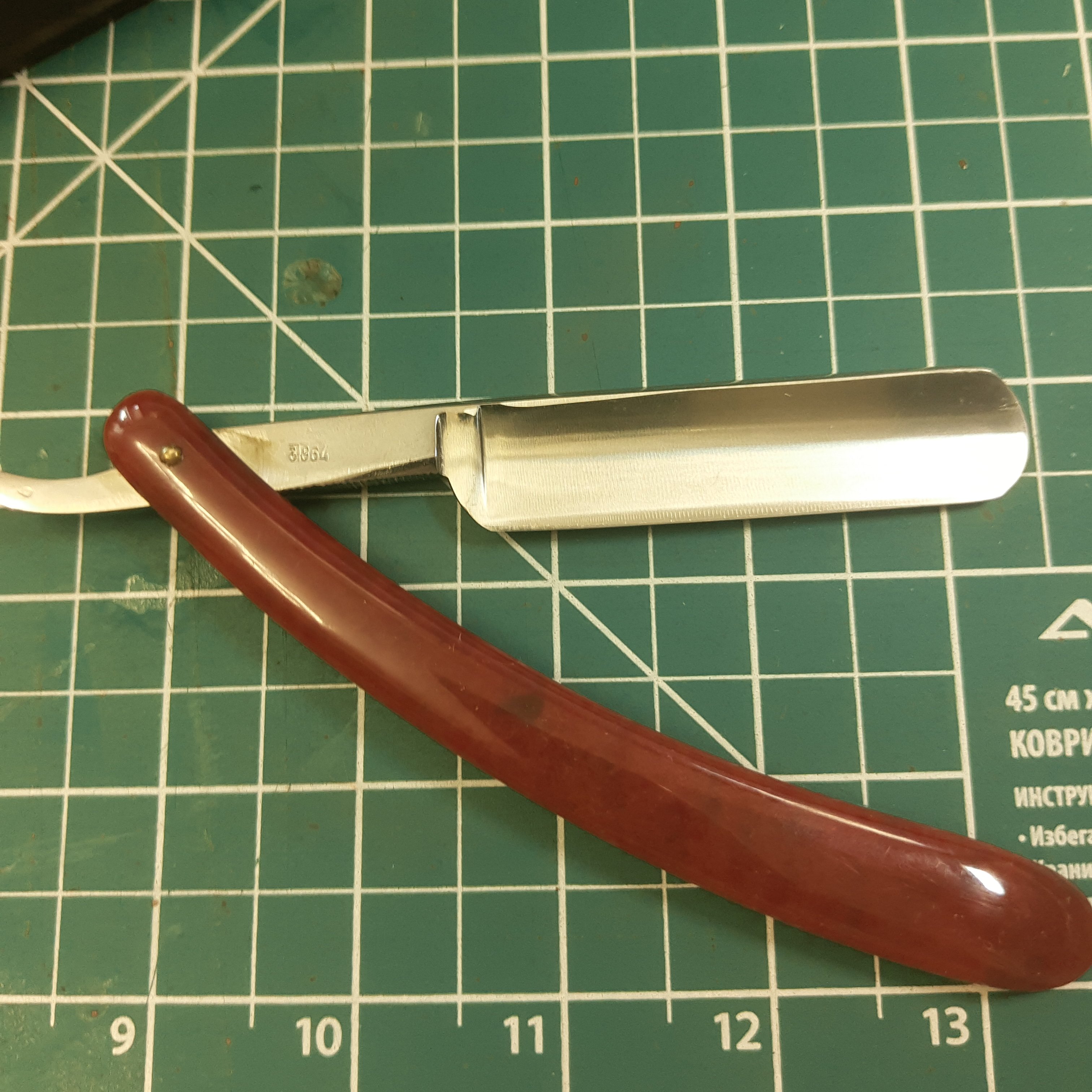 Самая "взрослая" бритва ориентировочно 1932-1934 года производства, с футляром, но без крышечки. С заводской заточкой, но со следами неправильного хранения.