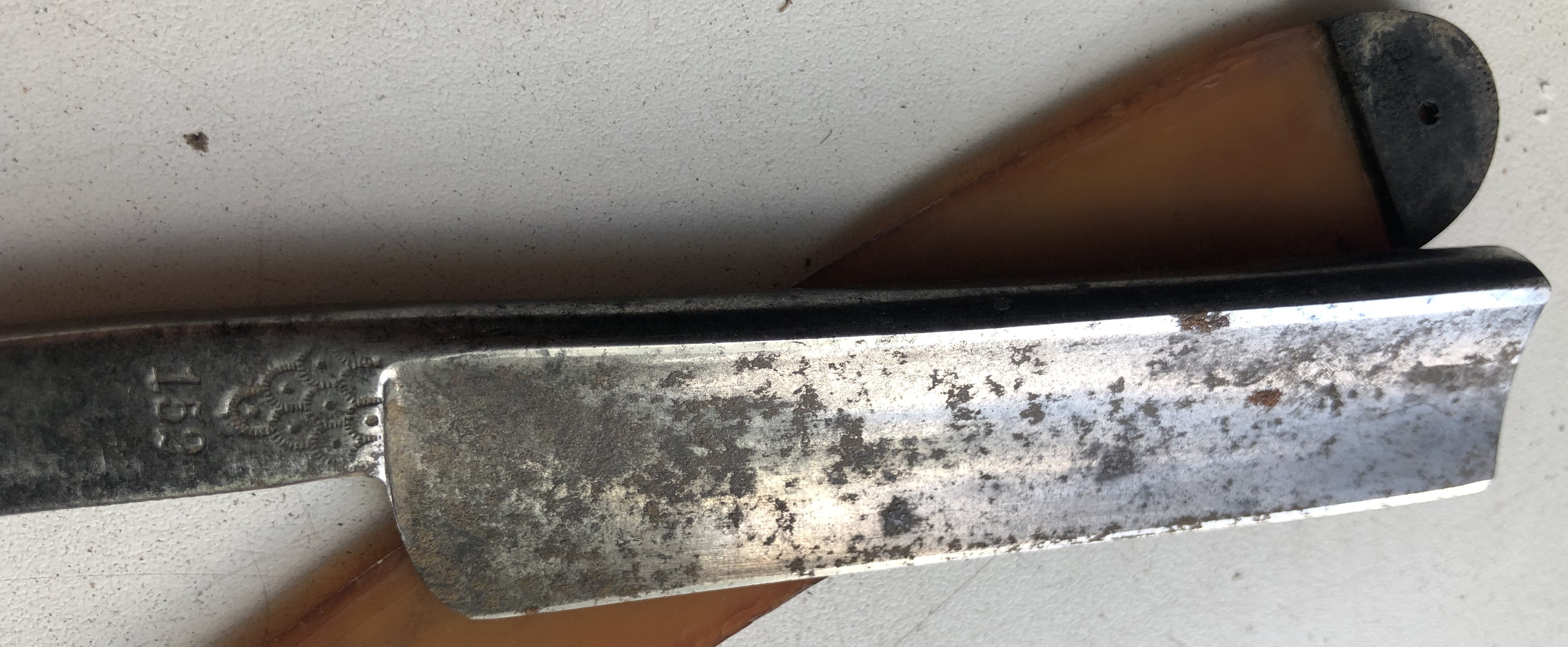 Бритва до... и после...Попал ко мне Стиз в плачевном состоянии. Решил им позаниматься. Фото До и После. Кстати, сталь отличного качества. В заточке очень хороша, твёрдая, но не крошится.