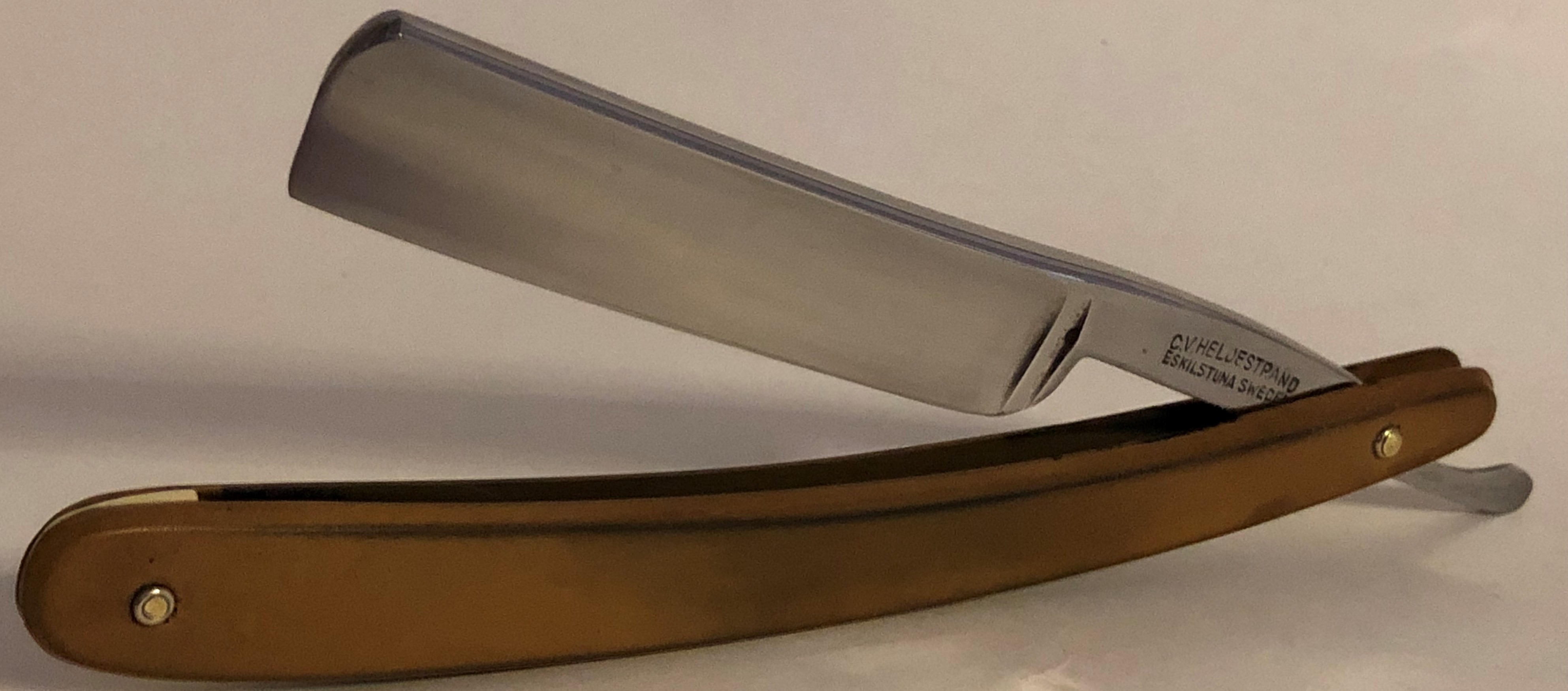 На мой взгляд, бритвы подобной формы лезвия незаслуженно обходят вниманием многие любители клинковой бритвы.Хотя, лично для меня, фреймы очень красивы внешне, имеют всегда отличные, качественные стали на клинке, довольно мягко и быстро точатся и доводятся(за счет своей формы лезвия),ну и способны выдавать бритье,близкое к эталонному.Ну,а из за того, что данные бритвы стоят совершенно недорого, то грех не иметь нечно подобное в коллекции. Бритва заточена и готова к бритью.