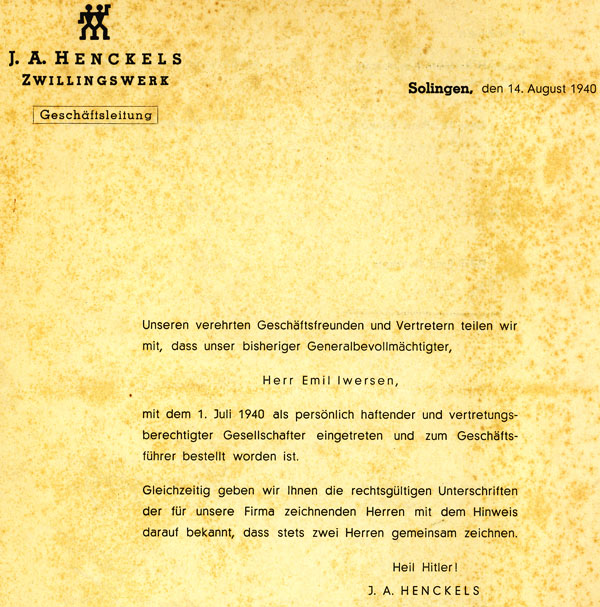 Только через несколько лет – в 1836 году – в Золингене братья были целиком вовлечены в работу фирмы J.A.Henckels, которую им передал отец. Готтфрид заведовал филиалом в Берлине, а Иоганн Авраам Хенкельс младший занимался совершенствованием формы высококачественных ножевых товаров, изготавливавшихся в Золингене.