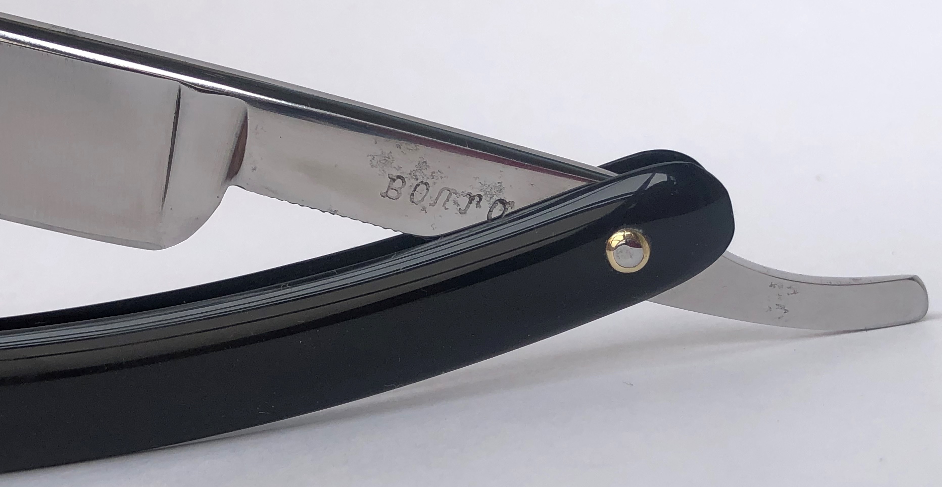 Само полотно на несколько мм укорочено.Было немного освежено от патины, с повторением "родного" характера шлифовки и умеренной полировки.Идеальная геометрия клинка. Сталь чистая, без видимых дефектов.Очень приятная во всех отношениях бритва, достаточно недорогая и если бы не укороченное полотно, то цены бы ей не было...