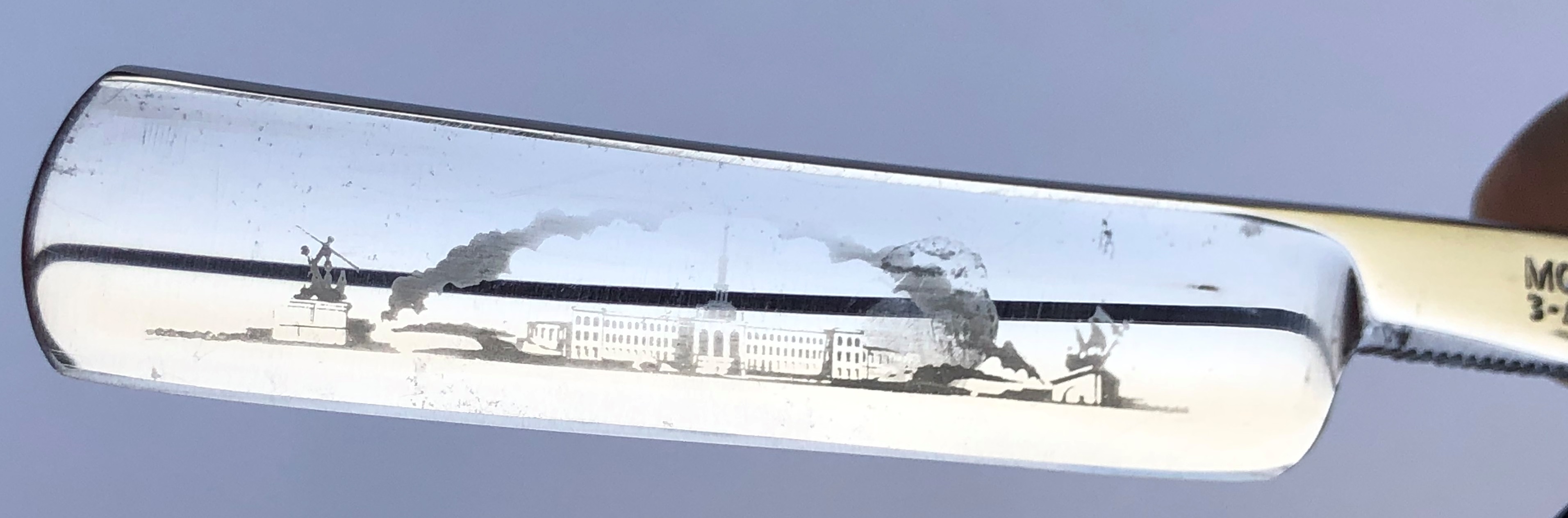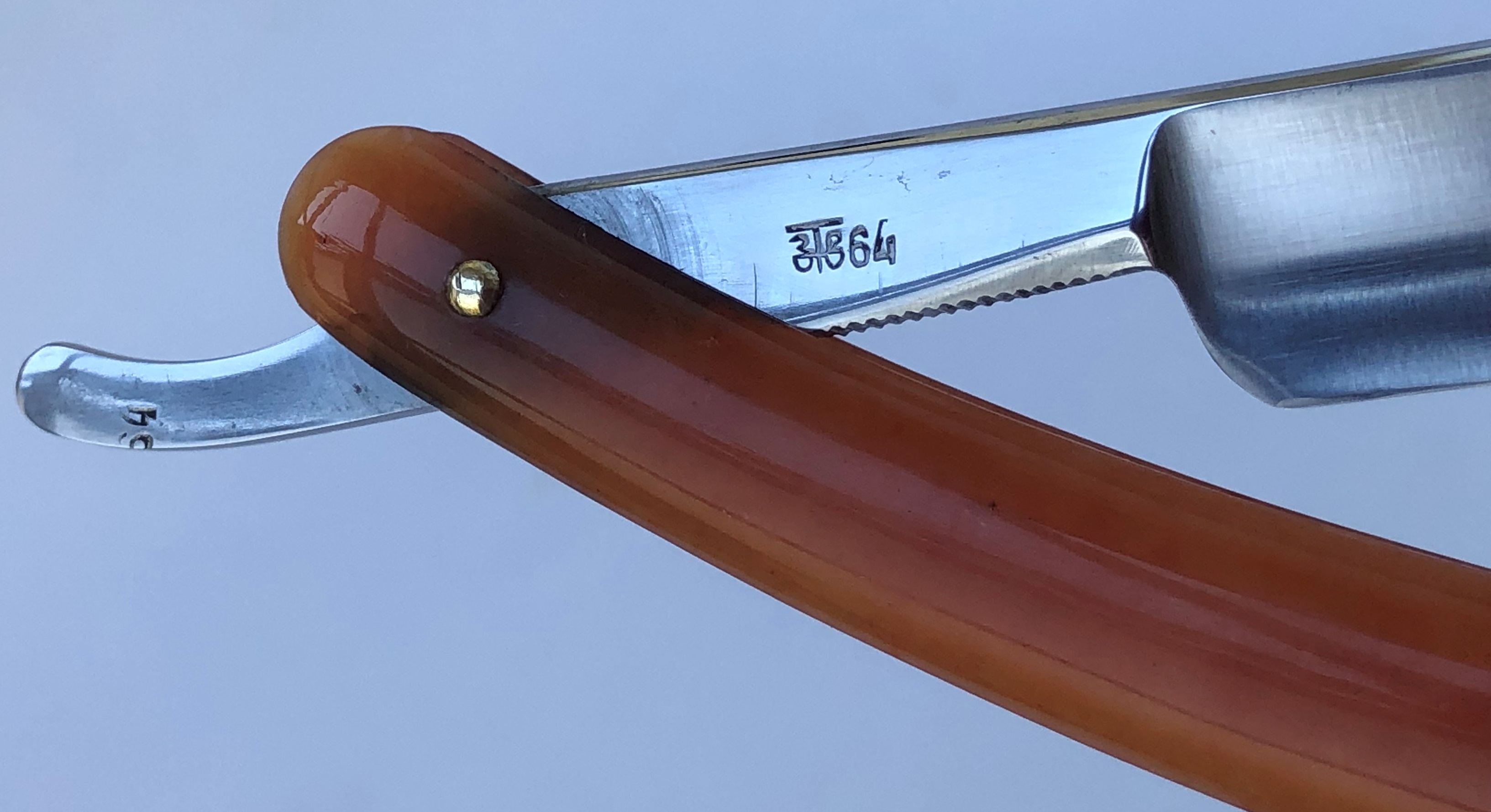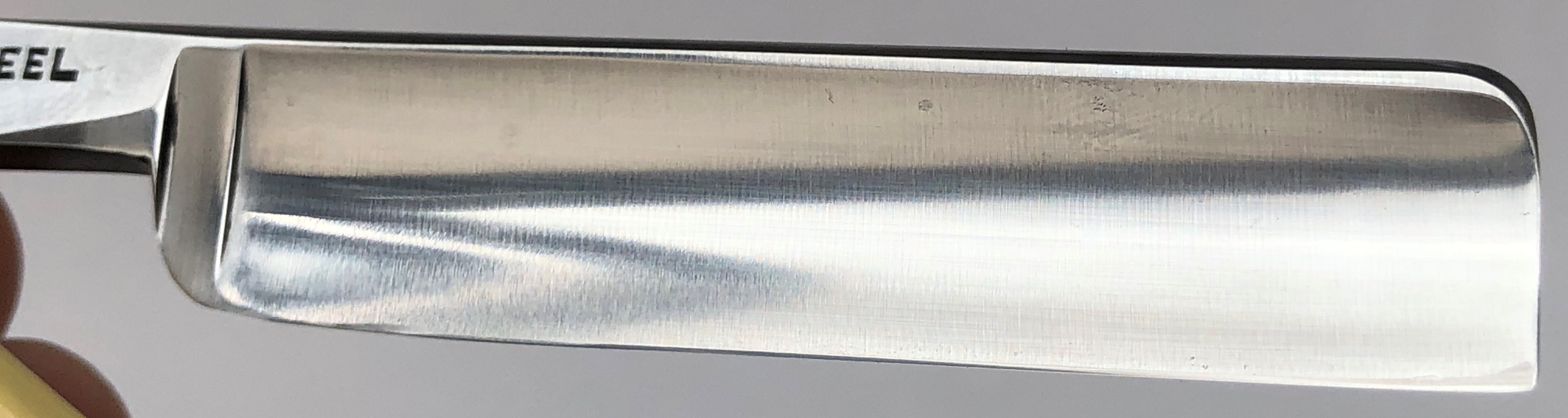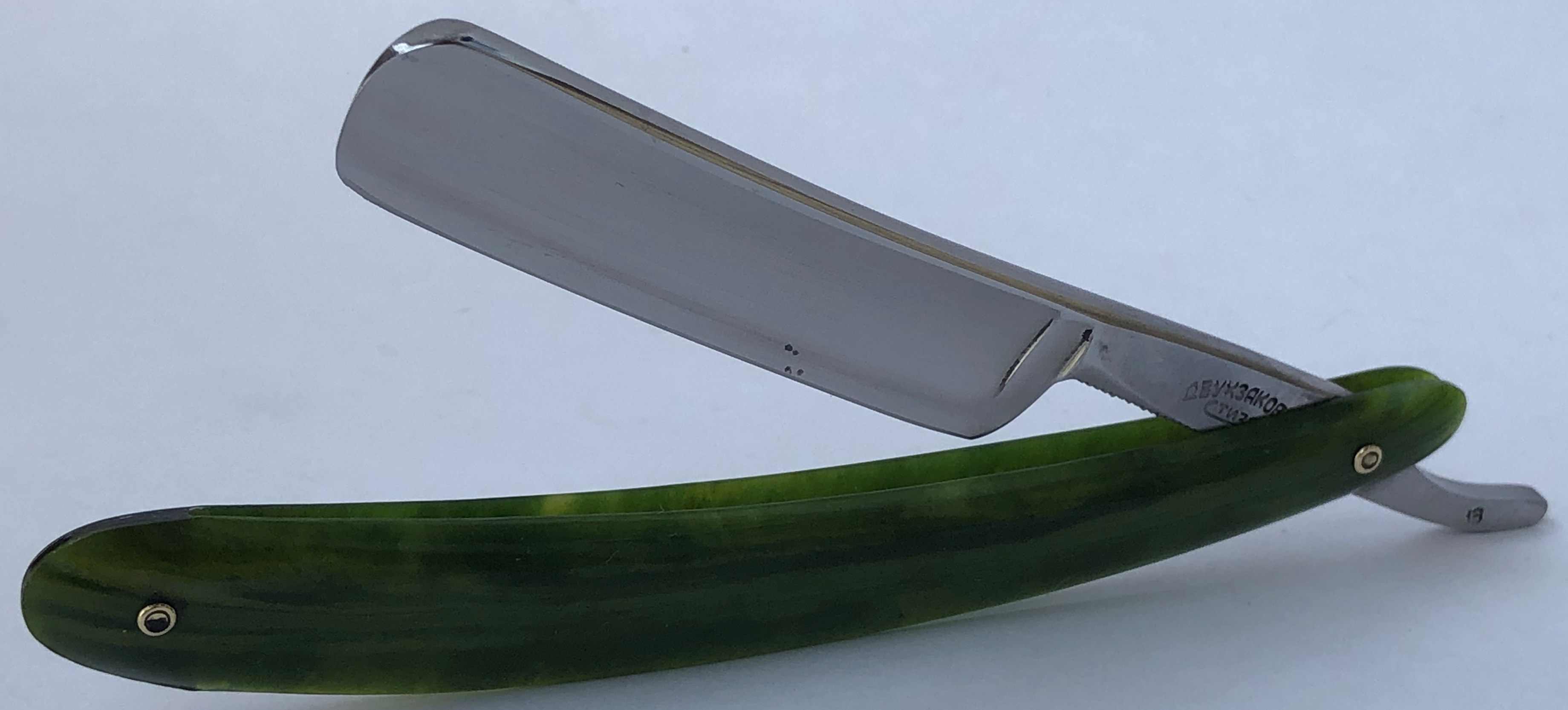 Бритва в прекрасном коллекционном, непользованном состоянии. Все оригинальное. Ничего не разбиралось и не ремонтировалось.Оригинальная шлифовка и полировка. Незначительные остатки патины не стал убирать, чтобы сохранить все в аутентичном виде.Идеальная геометрия полотна:кромочка равномерна по всей длине.