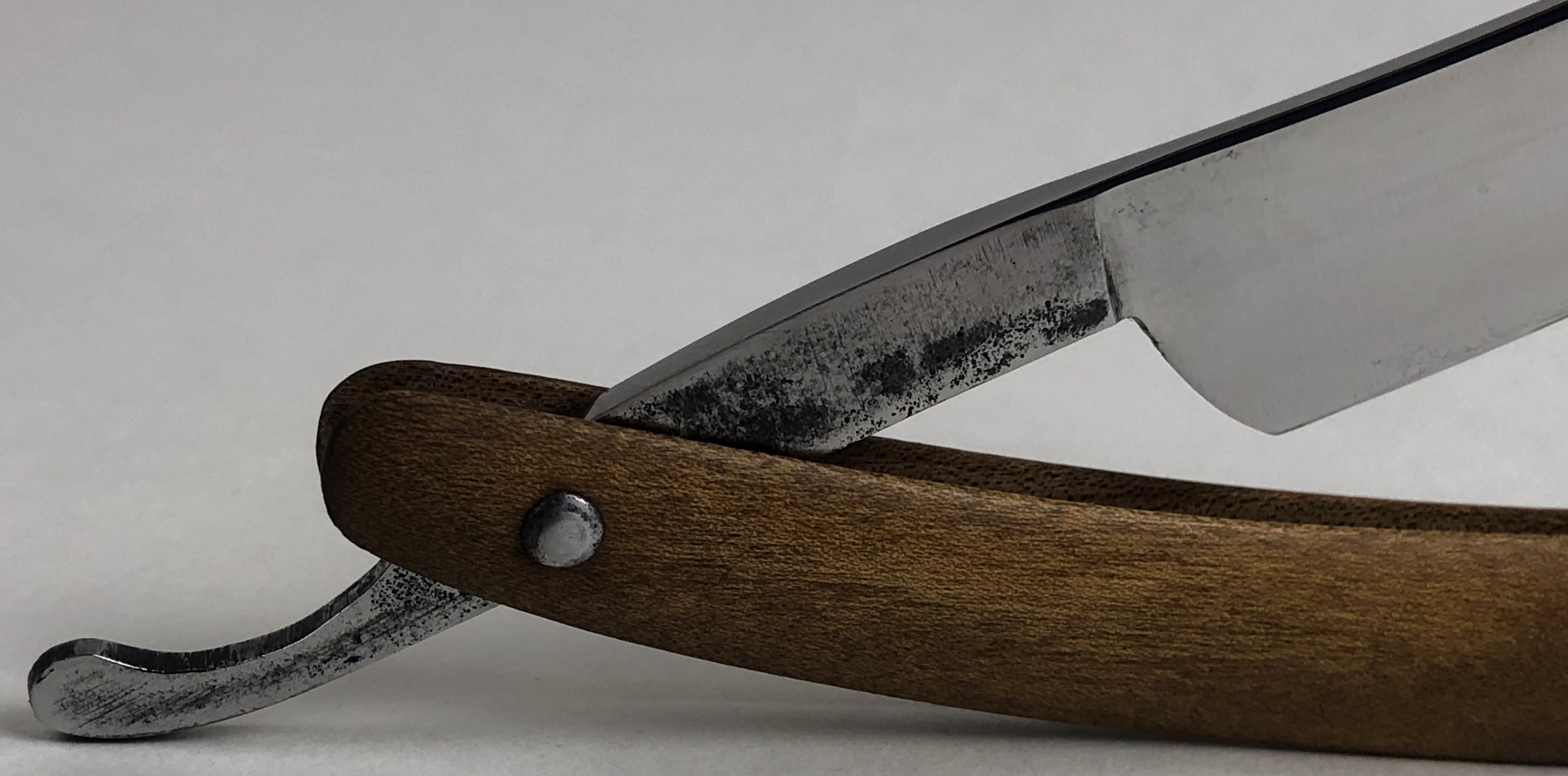 Бритва до... и после...Попробовал намедни оживить "стрекозу". Что интересно, попадаются не часто, но все равно попадаются бритвы с вот такой трубкой на обушке. Смысл такой "кастомизации" вполне понятен. Повышение угла атаки при бритье, больше для парикмахеров. Или восстановление угла заточки и бритья для бритв с уточенными обушками. Тут обушок был немного сточен, поэтому немного подправил.Ну и патину оставил на длиннющем хвостовике..