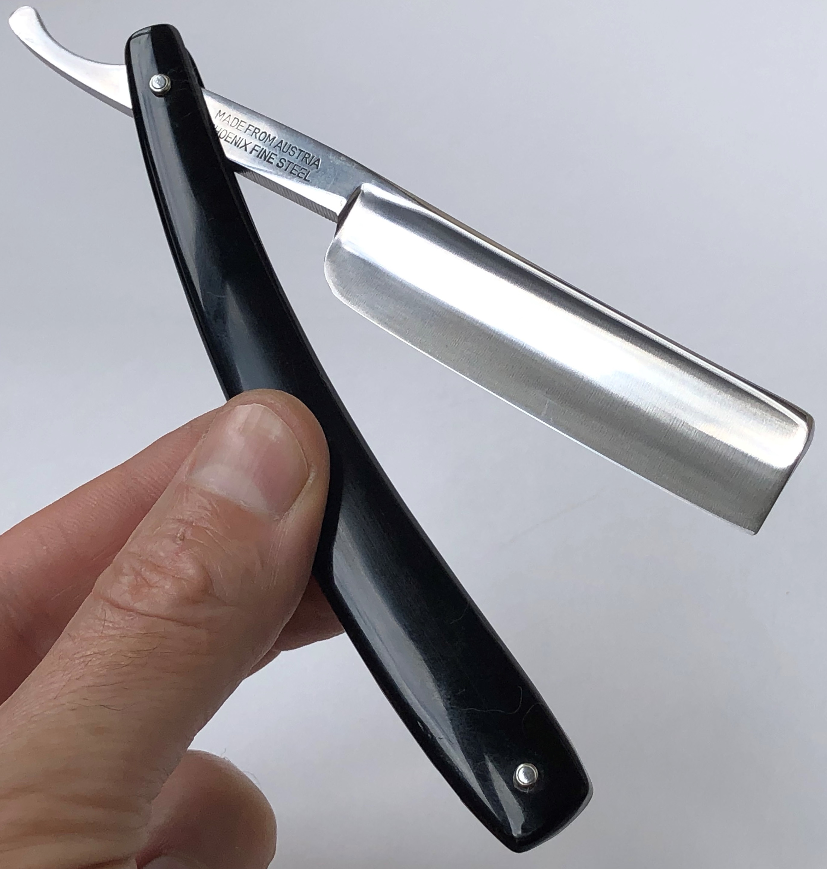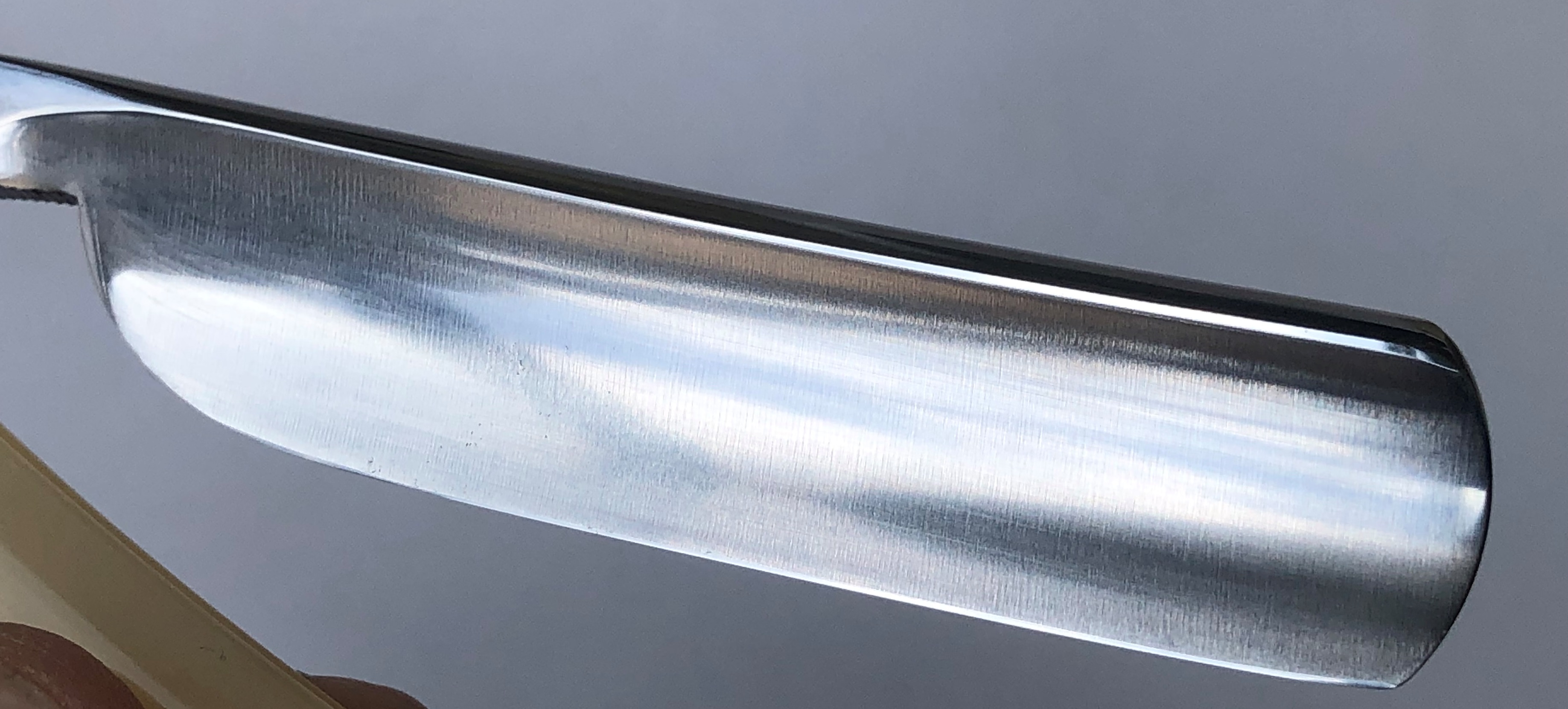 Бритва в очень хорошем состоянии, без активных и еле заметных следов пользования. Ничего не разбиралось и не ремонтировалось. Все в оригинале.Идеальная геометрия полотна.Кромочка чистая от дефектов. Несколько незначительных "точек времени" не стал трогать за ненужностью.Удобная форма клинка. Достаточно тяжелая.Эффектный, ажурный обушок.Очень неплохой вариант для коллекции и для бритья. Исходя из своего опыта могу сказать, что именно нержавеющие стали Фриодур были наиболее подходящие для бритв.