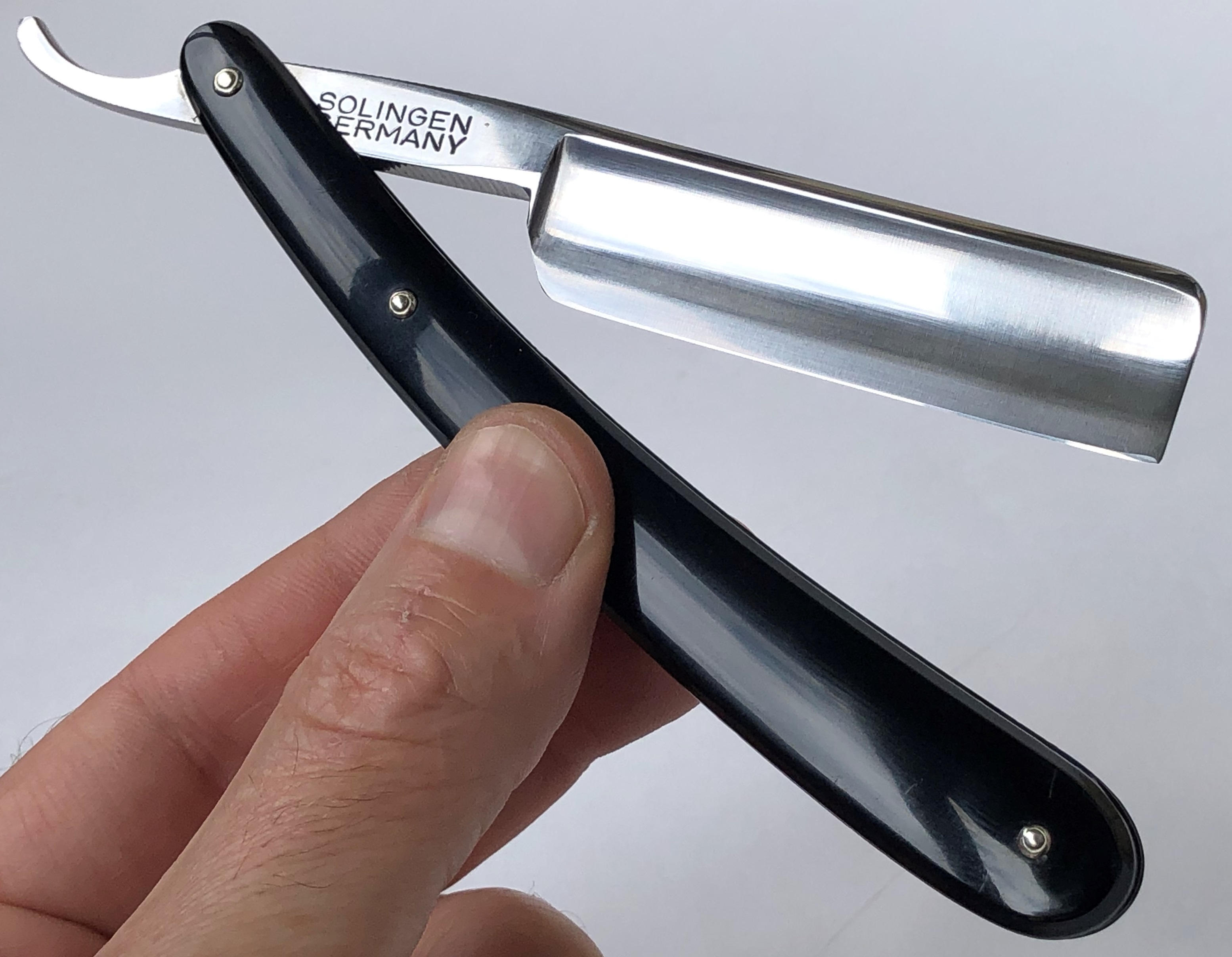 (Честно говоря, у меня нет идей по поводу того, что написано на обратной стороне.Какое отношение имеет немецкий Золинген в происхождении данной модели бритвы, не знаю.Ничего подобного за много лет наблюдения и общения с бритвами у меня не было.Судя по пинам похоже на немецкие, но в остальном все японское.В любом случае, бритва высококачественная и приехала из Японии).