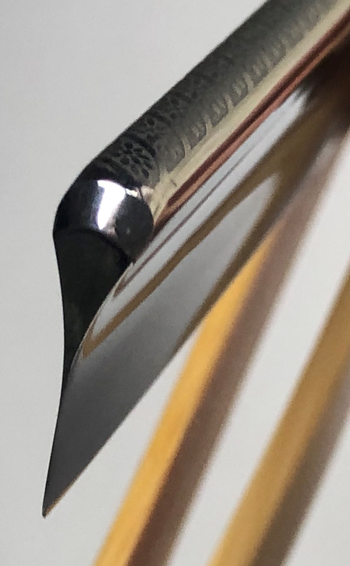 Бритва в идеальном состоянии, без следов использования.Для порядка разобрал, чтобы удалить следы окисления в районе осевого пина, а также поменял родные пины на более эффектные двух-цветные втулки, с добавлением внутренних шайб. Идеальная геометрия клинка:кромочка равномерна по всей длине и еле заметна. Не часто встречающаяся форма лезвия на японках, но идеально подходящая для новичка.Удобный для хвата, тонкий и длинный эрль.