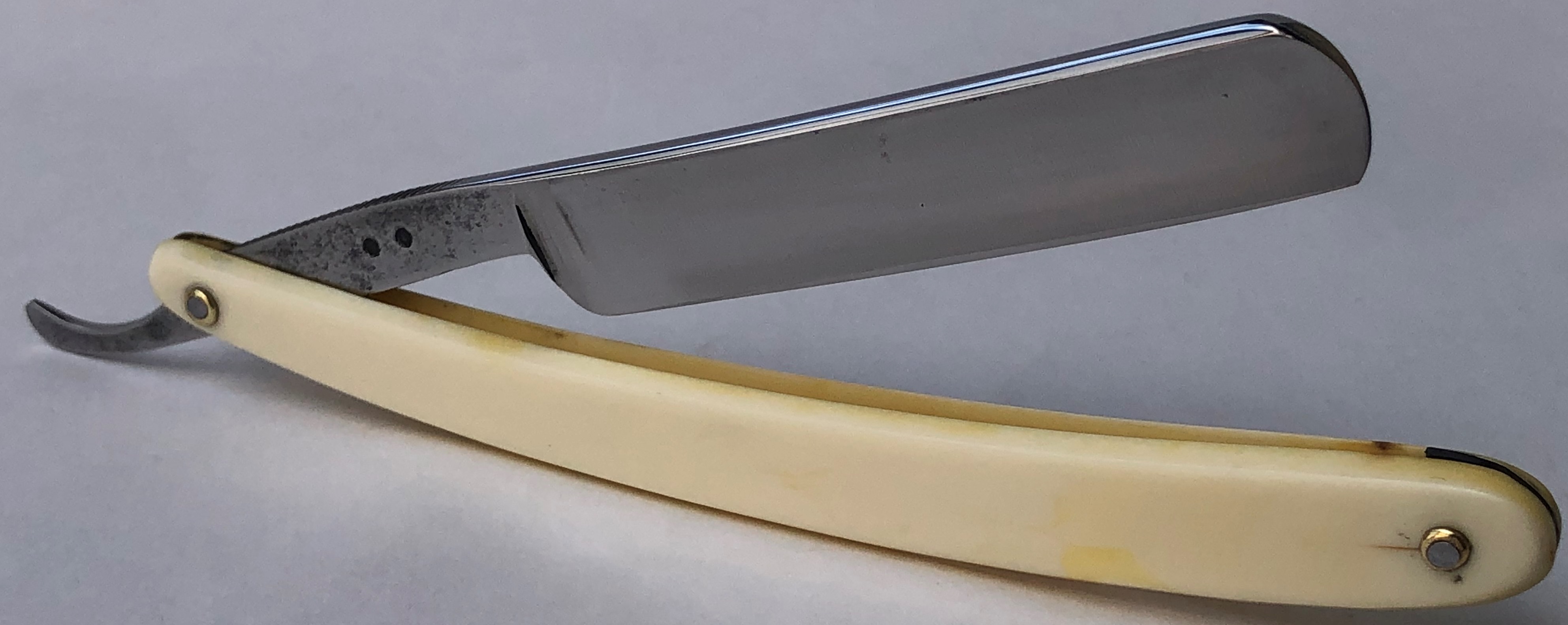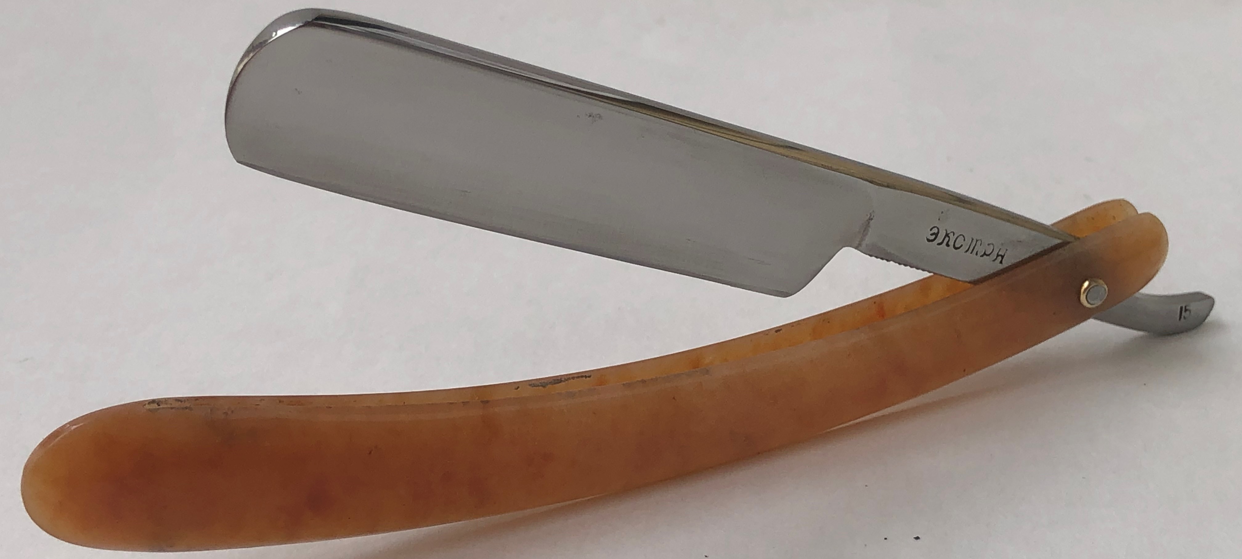 Ничего тут не делал. Бритва была разобрана, для удаления окисления в районе осевого пина, а также замены шайб на двух-цветные втулки.Очень неплохая и редкая вещь.Заточена и готова к бритью.