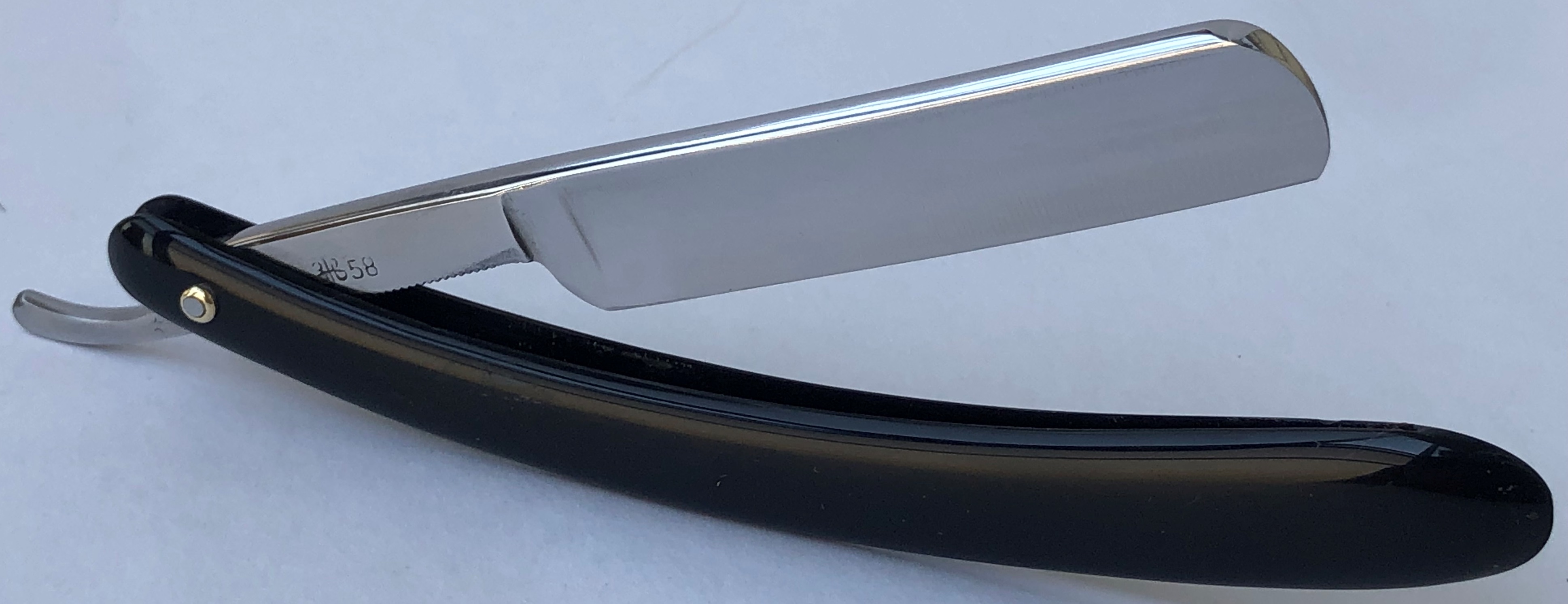 Сталь чистая, без видимых дефектов. Кромочка равномерна по всей длине.Бритва для опытных пользователей в основном. Заточена и готова к бритью. Не пропустите старинную бритву, с отличной, высококачественной сталью.