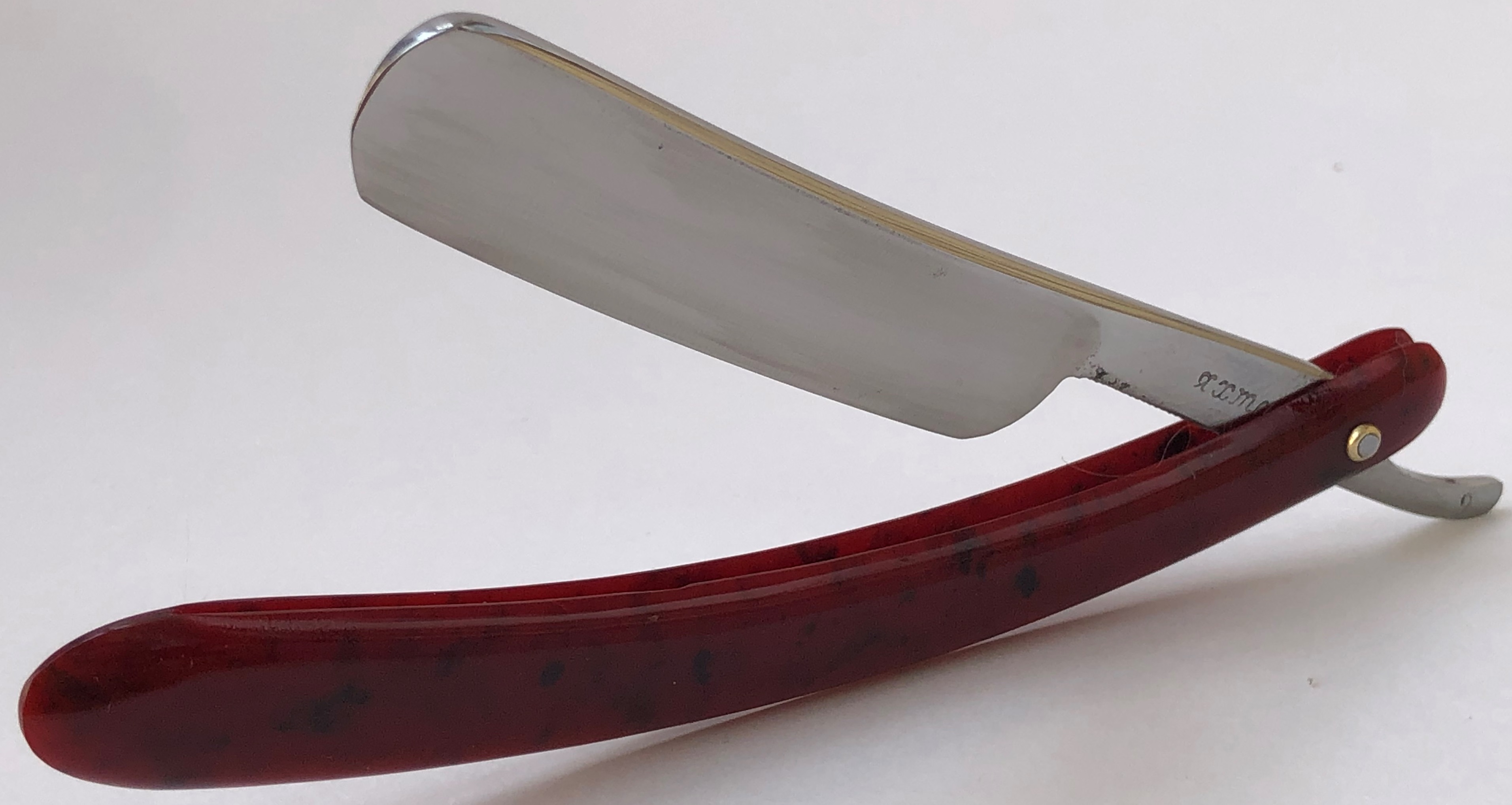 Бритва в пользовании не была, но прошла минимальные , косметические работы,с заменой осевого пина и добавлением внутренних шайб.Геометрия на уровне.Сталь чистая, без видимых дефектов.Родная коробочка. Бритва заточена и готова к бритью.