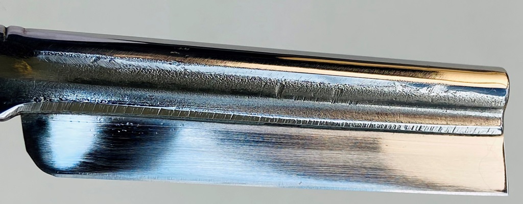 Ширина полотна-21.0 мм. Толщина обушка-5.5 мм. Полная вогнутость. Углеродистая "серебряная" сталь. Середина прошлого века производство. Бритва в пользовании не была. Только оттер от масла с консервации.Заводскую заточку заново переточил,чтобы посмотреть геометрия клинка, с которой оказалось все отлично.Кромочка идеально ровная по всей длине. Заводская шлифовка и полировка полотна. Ничего с бритвой не делалось.Сталь и кромка чистые от разного рода видимых дефектов.Высококачественная "звонкая/поющая" сталь.Мощная трёх-пиновая оправа.Травление чёткое,без потертостей. Коробочку подобрал от такой же бритвы,но в достаточно хорошем состоянии.Перед отправкой бритва будет полностью заточена и доведена до состояния бритья. Цена-20500 р с доставкой. Внимание! Важная информация! Spoiler Show