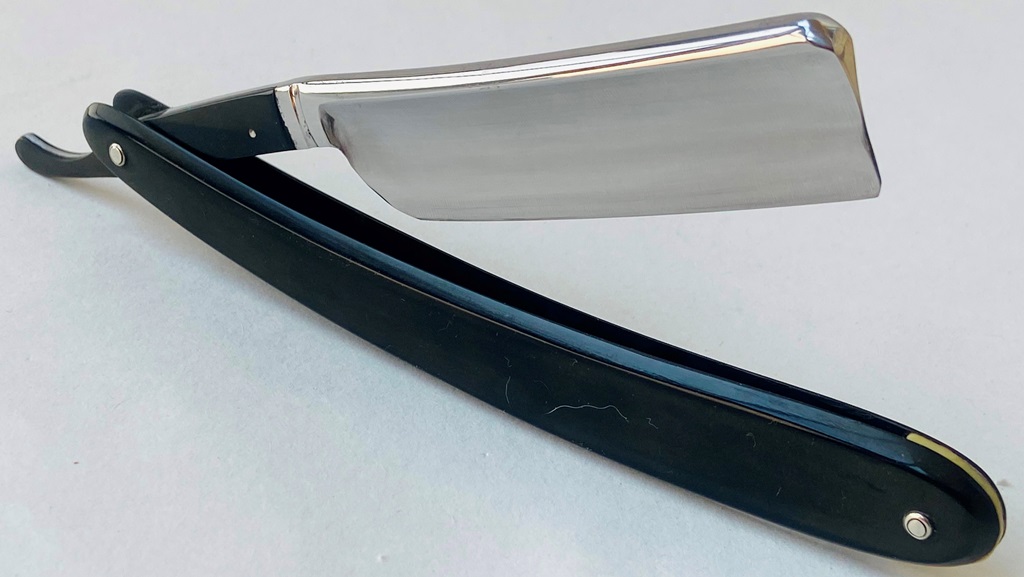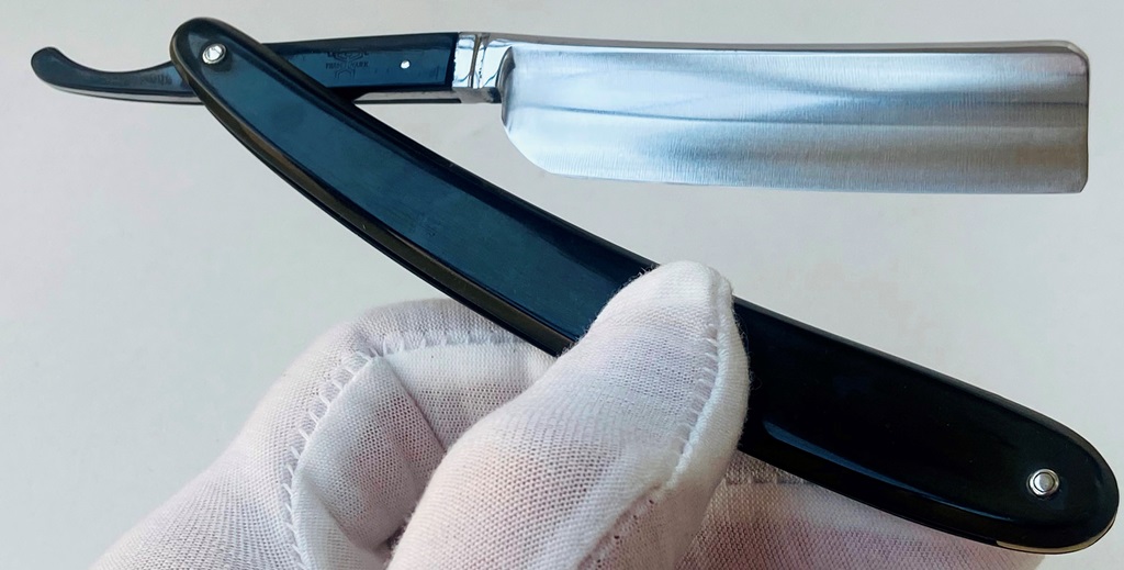 Ширина полотна-17.5 мм. Толщина обушка-4.5 мм. Форма лезвия ближе к полу-клину. Углеродистая сталь. Информации по производителю не нашел,но по косвенным признакам, а также исходя из своего опыта,могу сказать,что бритва начала 20-го века.Возможно была сделана на рубеже 19 и 20-х веков. Бритва в прекрасном состоянии и без видимых следов пользования. Скорее в пользовании не была,хотя за столько времени могло быть всё.. Бритву разобрал,немного освежил металл и заново собрал, с сохранением внутренних шайб и оригинальных пинов.Идеальная геометрия полотна:кромочка равномерна по всей длине и еле заметна.Барберский носик. Бритва заточена и готова к бритью.Была лично протестирована.Могу сказать, что в бритье тут классическая немка:своенравная,дерзкая, не прощающая ошибок. Но в тоже время всегда выполнена на самом высоком уровне,как все немецкое.. В итоге,чистое и комфортное бритье,с неким "металлическим" характером сбриваемой щетины. Можно где то сравнить с советскими Вачами и Росинструментами военного периода. Короче, отличная и недорогая старинная вещь. Не пропустите. Цена-9500 р с доставкой. Внимание! Важная информация! Spoiler Show