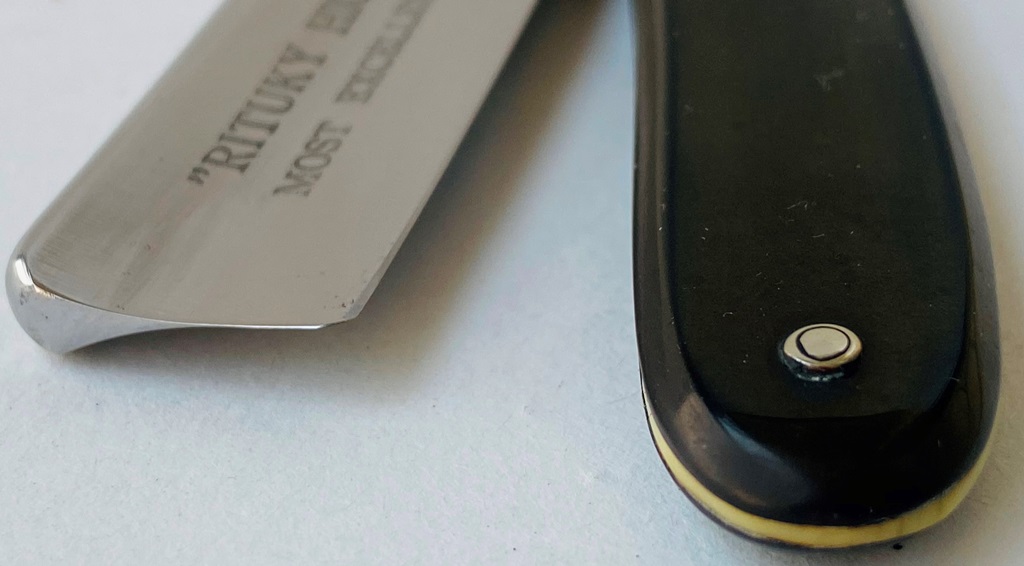 Ширина полотна-17.0 мм. Толщина обушка-4.3 мм. Длина РК-65.0 мм. Форма лезвия ближе к полу-клину. Углеродистая сталь. Барберский вырез. Скорее всего бритва первой половины прошлого века. Компактная и удобная во всех отношениях Ракушка, с прекрасной древней патиной на клинке,которую рука не поднялась вычищать.Поэтому только немного освежил металл полиролью и все.Оставил небольшую и аккуратную утОчку обушка,как дань преклонному возрасту бритвы.К тому же клинок имеет идеальную геометрию:кромочка равномерна по всей длине.Ручка сохранилась прекрасно. Немного полирнул ее тоже,после чего она снова заиграла прежними красками.. . Новые двух-цветные втулки и внутренние шайбы. В итоге получилась отличная Ракушка,совершенно недорогая, но с отличной сталью и,думаю,что в бритье тоже не должна разочаровать.. Да и просто красивая,старинная бритва, так что не пропустите! Заточена и готова к бритью. Цена-6550 р с доставкой.color=#FF0000]ПРОДАН [/color] Spoiler Show Spoiler Show