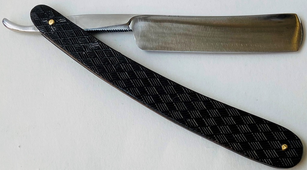 Ширина полотна-17.5 мм. Толщина обушка-4.5 мм. Форма лезвия ближе к полу-клину. Углеродистая сталь. Информации по производителю не нашел,но по косвенным признакам, а также исходя из своего опыта,могу сказать,что бритва начала 20-го века.Возможно была сделана на рубеже 19 и 20-х веков. Бритва в прекрасном состоянии и без видимых следов пользования. Скорее в пользовании не была,хотя за столько времени могло быть всё.. Бритву разобрал,немного освежил металл и заново собрал, с сохранением внутренних шайб и оригинальных пинов.Идеальная геометрия полотна:кромочка равномерна по всей длине и еле заметна.Барберский носик. Бритва заточена и готова к бритью.Была лично протестирована.Могу сказать, что в бритье тут классическая немка:своенравная,дерзкая, не прощающая ошибок. Но в тоже время всегда выполнена на самом высоком уровне,как все немецкое.. В итоге,чистое и комфортное бритье,с неким "металлическим" характером сбриваемой щетины. Можно где то сравнить с советскими Вачами и Росинструментами военного периода. Короче, отличная и недорогая старинная вещь. Не пропустите. Цена-9500 р с доставкой. Внимание! Важная информация! Spoiler Show