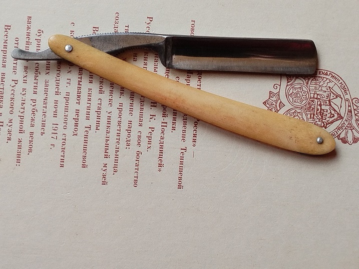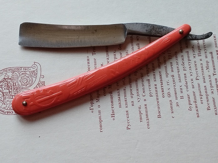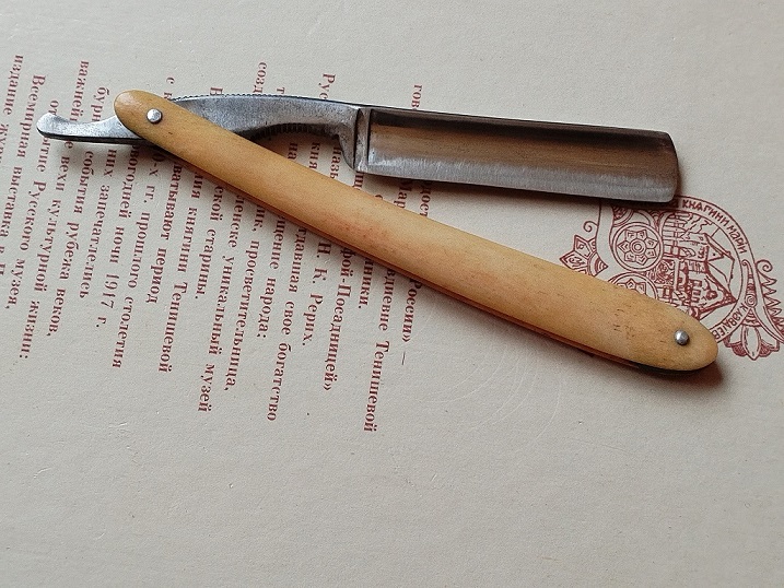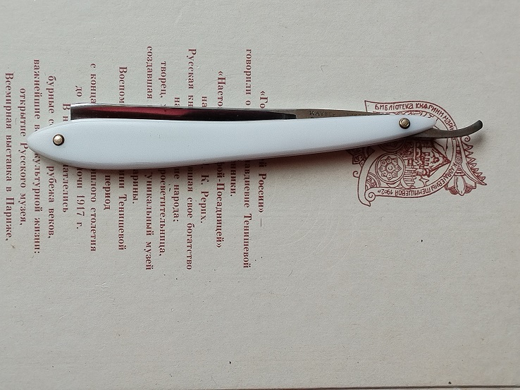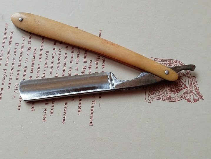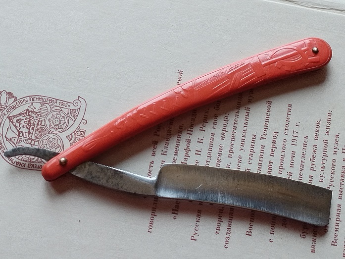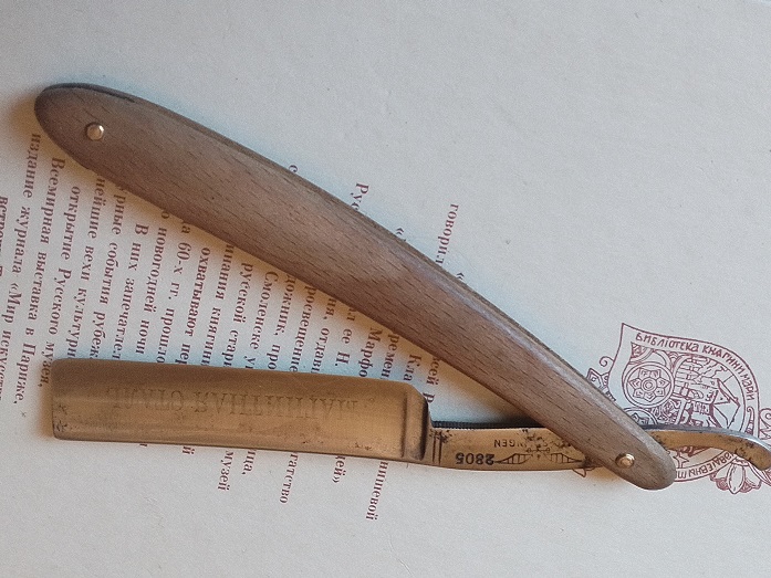Редкое клеймо аэроплан. Ширина лезвия 19мм. Толщина обуха 5,2мм. Ручка из бука. Заточена и подготовлена для бритья. Цена - 7000 руб.