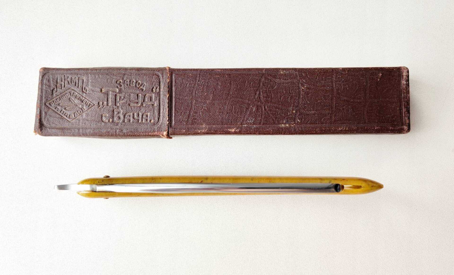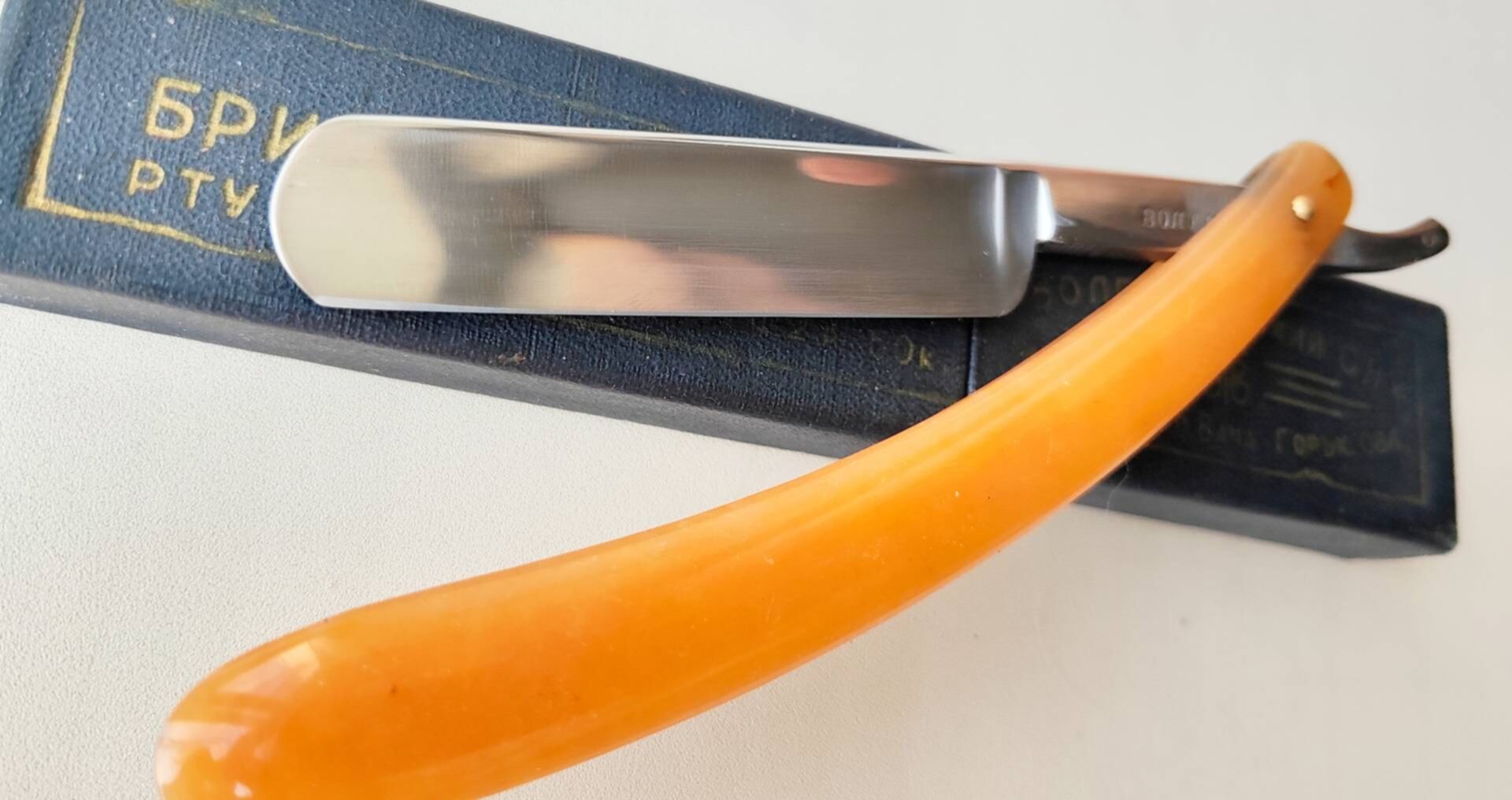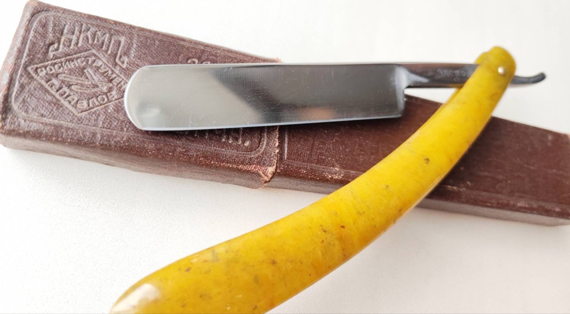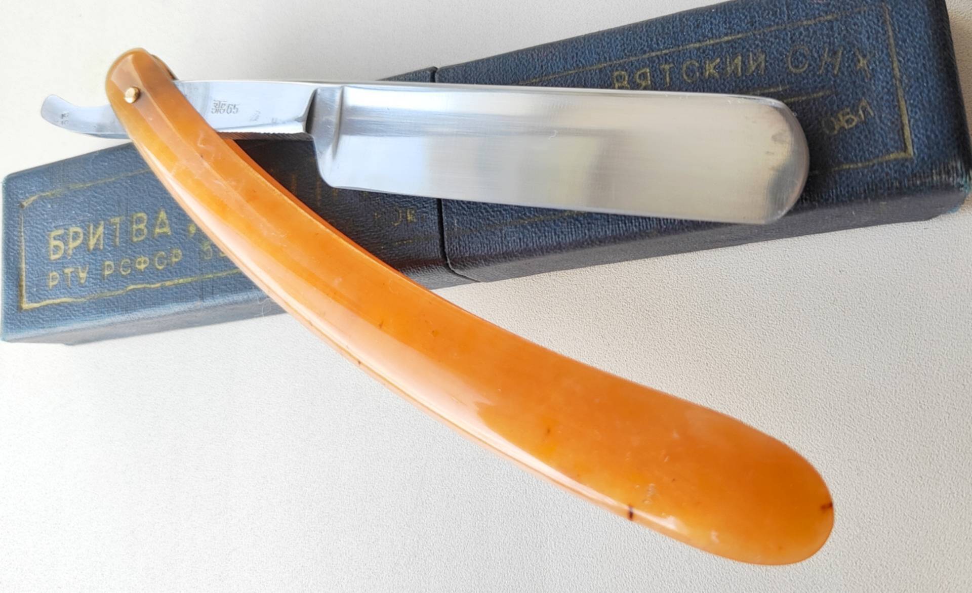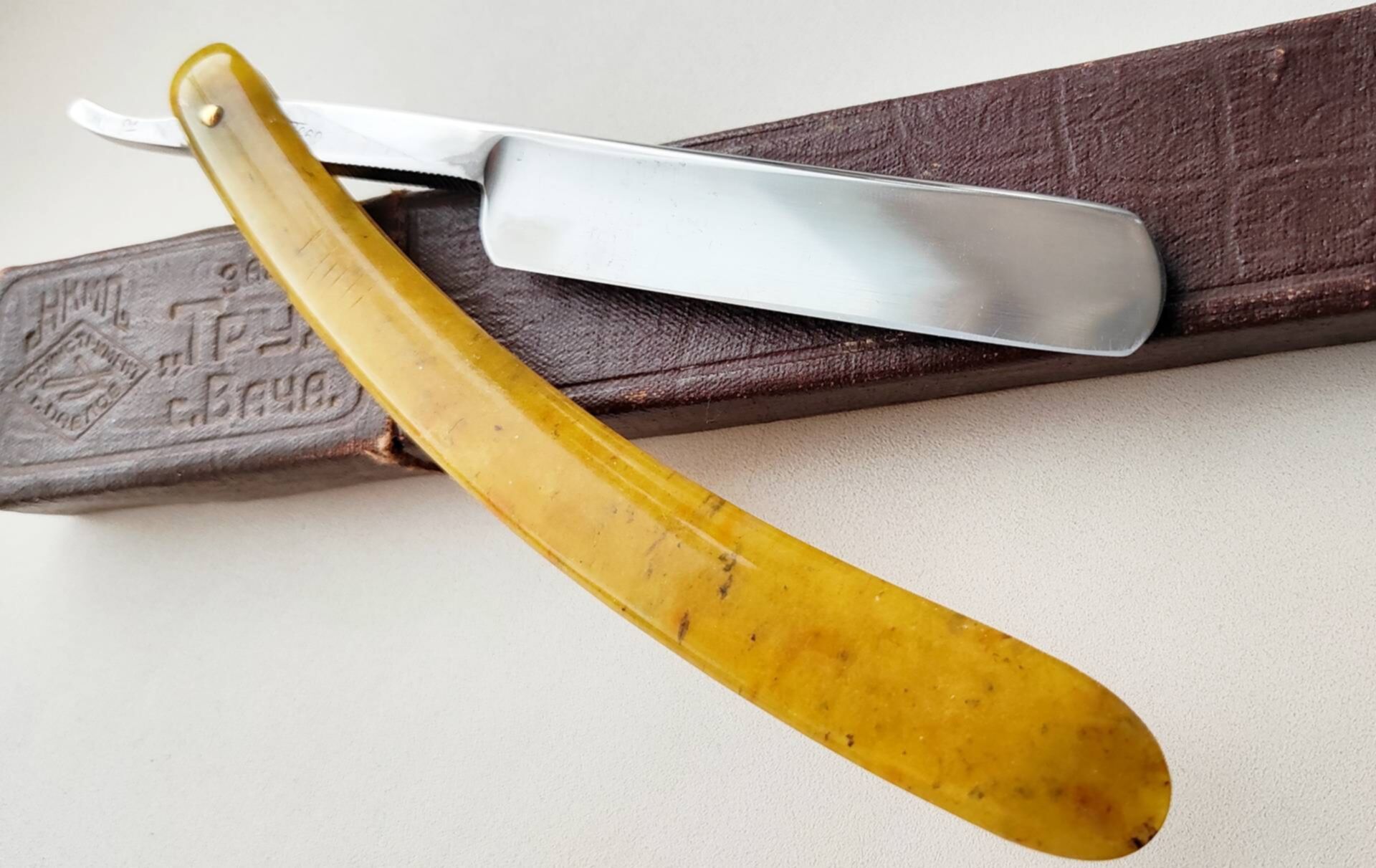 8) Опасная бритва Экстра, завод ЗТВ (Вача), 1962 год. Ширина полотна 16.5 мм, все родное, футляр от белее ранней Вачи. Бритву вручную почистил и заточил, остались некоторые следы на полотне, кромка чистая. Подготовлена мной к бритью. На бритвы Экстра шла сталь с несколько другой термообработкой, что оказывало влияние на повышение стойкости режущей кромки. Из-за этого бритвы Экстра ценились в парикмахерских.