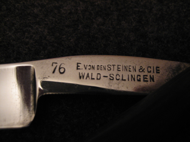 Re: Ernst von den Steinen & Cie, Wald, SolingenМой E. von den Steinen & Cie, Wald-Solingen 76. Рукоятка встречается на разных бритвах, в том числе на нашем форуме.