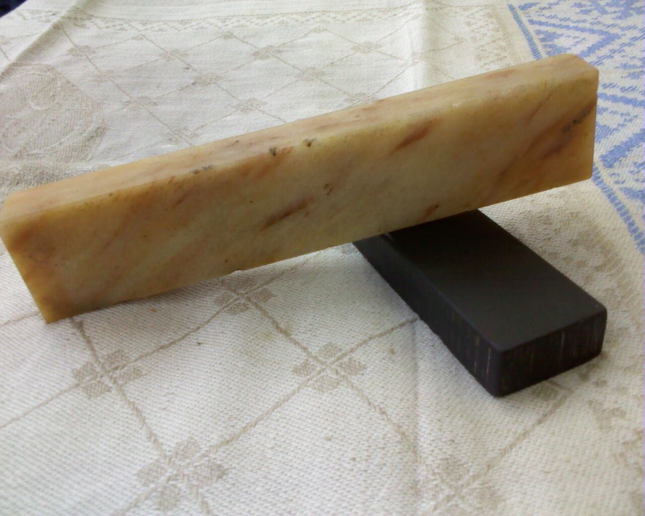 На нем написано : 鎌砥石. А это значит " камень для заточки серпов". Да еще серпы то японские здоровые , типа как косы у нас.