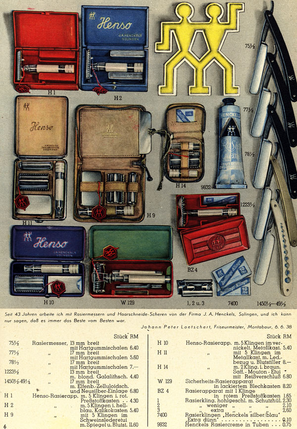 Фирма Henckels предоставила информацию, что в 1914 году у неё было 135 разных артикулов бритв. Только различные вариации ширины бритв, гравировки и материалов ручек могут быть источником столь широкого ассортимента бритв.