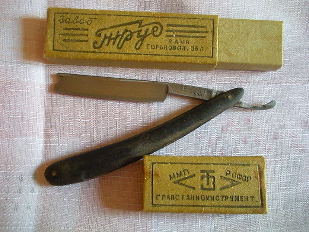 Дальнейшую историю завода "Труд" мы намеренно опускаем, так как производство опасных бритв после 1968 года было прекращено.