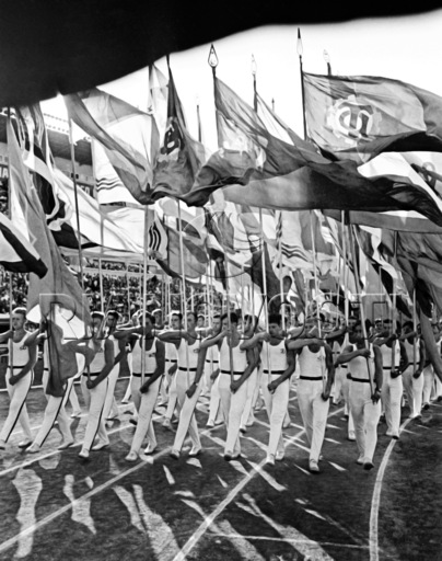 - Парад спортсменов на церемонии закрытия II Спартакиады народов СССР на Центральном стадионе им. В.И.Ленина в Москве. 08.08.1959