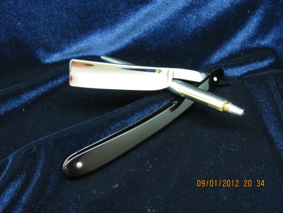Параметры: ширина 16,5мм, обух 4,3мм. Ручка из кости, ровная, без потерь. Возраст- скорее всего довоенный выпуск на экспорт. Бритва прошла процесс реставрации и заточки лично мной, пины , геометрия, клеймо производителя были сохранены. Продано Oxford Razor Show