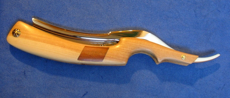 Re: Мечтаю изготовить бритвуВот еще парочка попыток изготовить бритву. В первом случае ручка - пластик, вставка из перламутра, во втором - можжевельник, вставка из вишни. Вставки для гравировки инициалов нового хозяина.