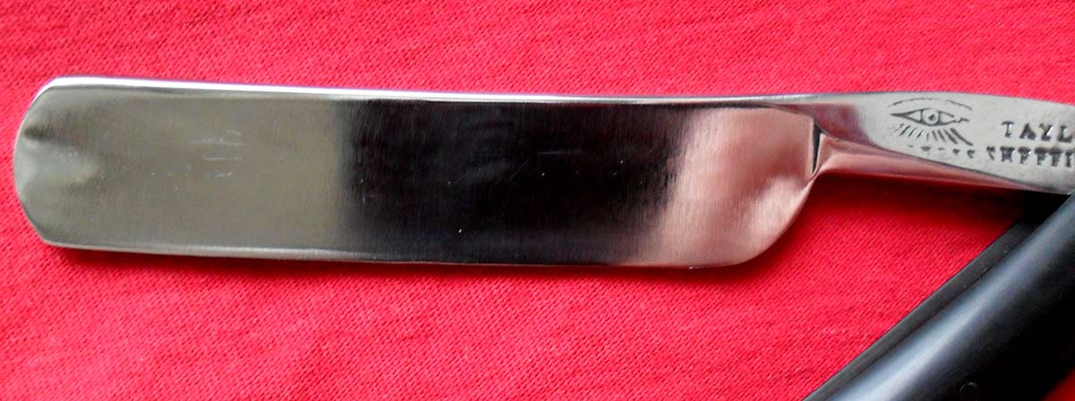 Ручка - натуральный рог в неплохом состоянии, клинышек из металла. По-видимому, ручка родная, пины тоже. Исходя из этого, предполагаю, что бритва относится к концу XIX-началу XX века.