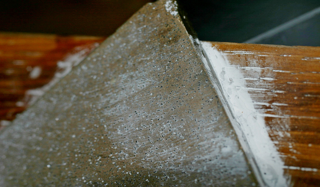 Как правило, максимально изнашивается средняя часть бруска, что искажает рабочую плоскость и «заваливает» режущую кромку. Средств борьбы с этим явлением довольно много. Сами японцы делают специальные камни из твердых износостойких сортов абразива, с рядами параллельных пропилов на одной из сторон, под углом 45 градусов к продольной оси бруска, с помощью которых выравнивают изношенный камень. Для этих целей можно использовать и крупнозернистую водостойкую наждачную бумагу, наклеенную на стекло. Брусок укладывается на нее изношенной стороной и двигается круговыми движениями, напоминающими цифру «8», до восстановления плоского состояния. Можно использовать другой, более крупнозернистый камень. Регулярная правка камня поможет снизить неравномерный износ и упростит уход за ним. При этом для предотвращения скола краев камня при работе стоит периодически, по мере износа, наводить на его гранях неширокую фаску под углом в 45 градусов. Истончившийся брусок рекомендуют наклеить водостойким клеем на ровный кусок толстого органического стекла или древесины — это продлит срок его жизни. Оригинал статьи тут
