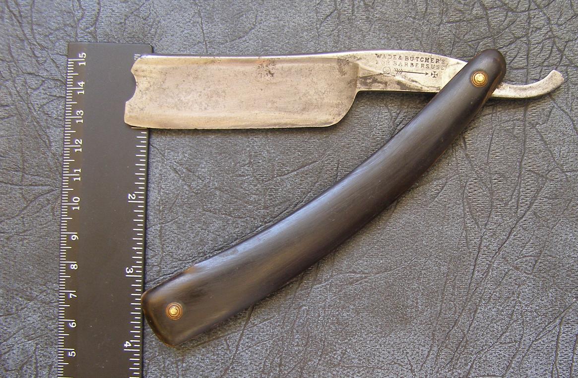 Бритва - слегка-улыбчатый клин, ширина - чуть больше дюйма, после реставрации будет 8/8. Обушок - 7,1