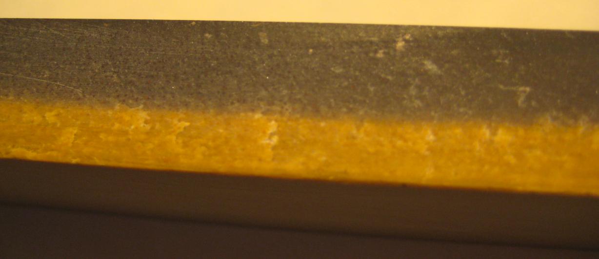 Действительно, причины нет. А от себя я бы еще добавил, что щербина на фиолетовой стороне, по моему, говорит о том, что с ней не стоит возиться, потому что это обычная порода и камень не комбинированный. А вообще-то 10 инч на 2.5 при толщине рабочего слоя до 9 мм это просто класс. Очень дорогая штука. Гораздо дороже 20 евро. Лично я считаю, что повезло.
