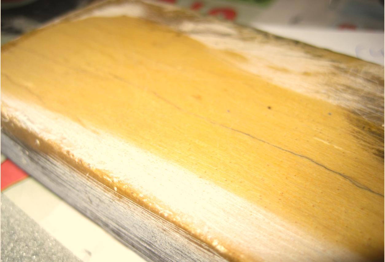 Re: Помогите определить каменьПродолжаю обзор. Отпилил от камня ножовкой по металлу (грязи много было) проблемный кусок, подровнял пока на крупной наждачке на стекле (но плоскость ещё не достаточно ровная). Камень постройнел (новые размеры 24 х 6,8 (5,8) х 18). Вот что получилось (много фоток).