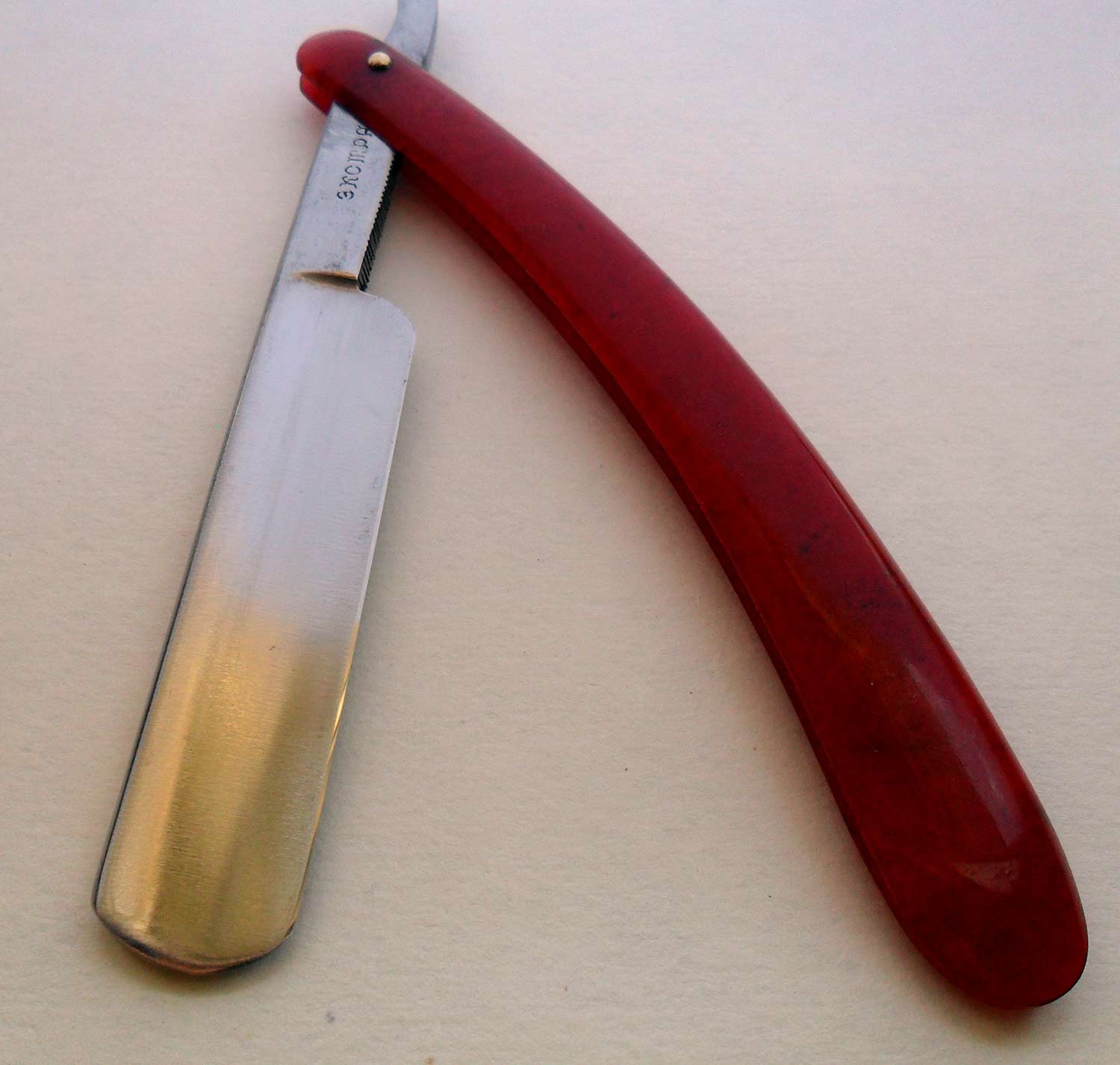 На основании материалов ручки предполагаю, что бритва относится к концу XIX-началу XX века.