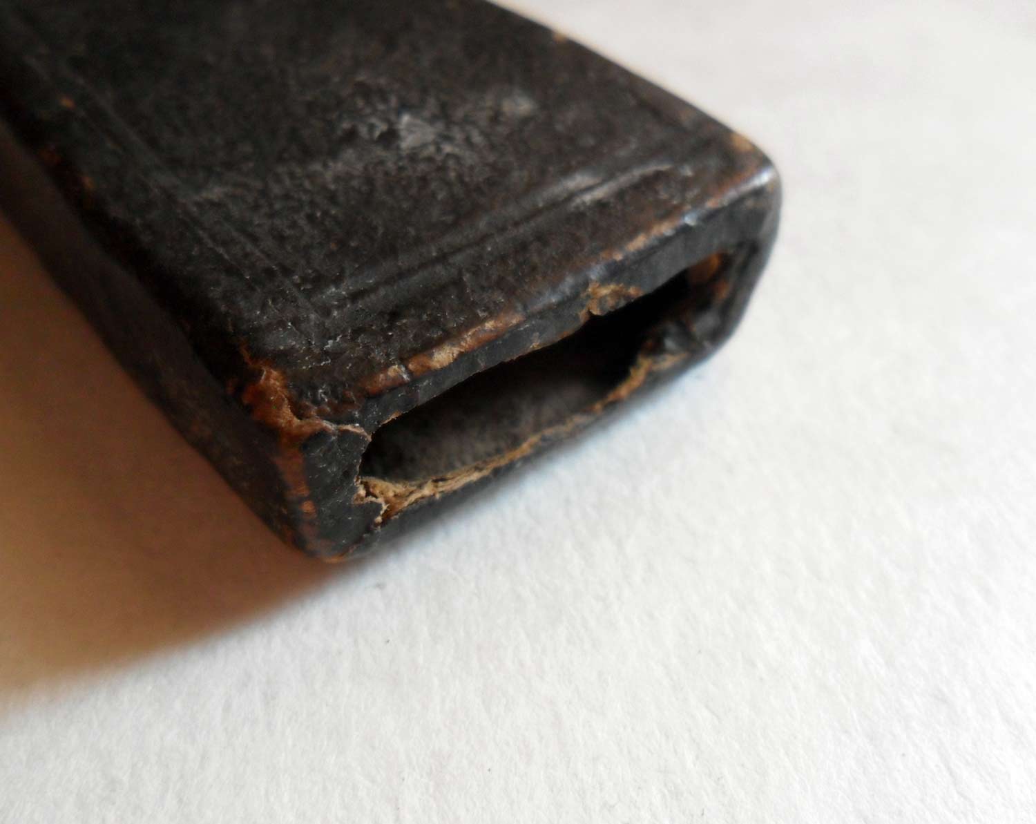 Сведения о производителе: http://britva.ru/forum/viewtopic.php?f=28&t=1663" onclick="window.open(this.href);return false; Ручка - рог, в неплохом состоянии, как для своего почтенного возраста. Возле головной заклепки имеется продольная трещина (видна на фото), залита цианоакрилатом. Уверен, что при аккуратном использовании проблем не возникнет. Клинышек - металл. Очень мощная бритва, по бритью - отличный клин, бреет начисто с первого прохода и при этом комфортно. Естесственно, заточена и полностью готова к бритью. Ширина полотна 22 мм, толщина в обухе 6 мм. В комплекте имеется штатный футляр - надпись различима. Состояние далеко не идеальное, но не рассыпается, вполне жив. Верхнее донце прорвано - видно на фото.
