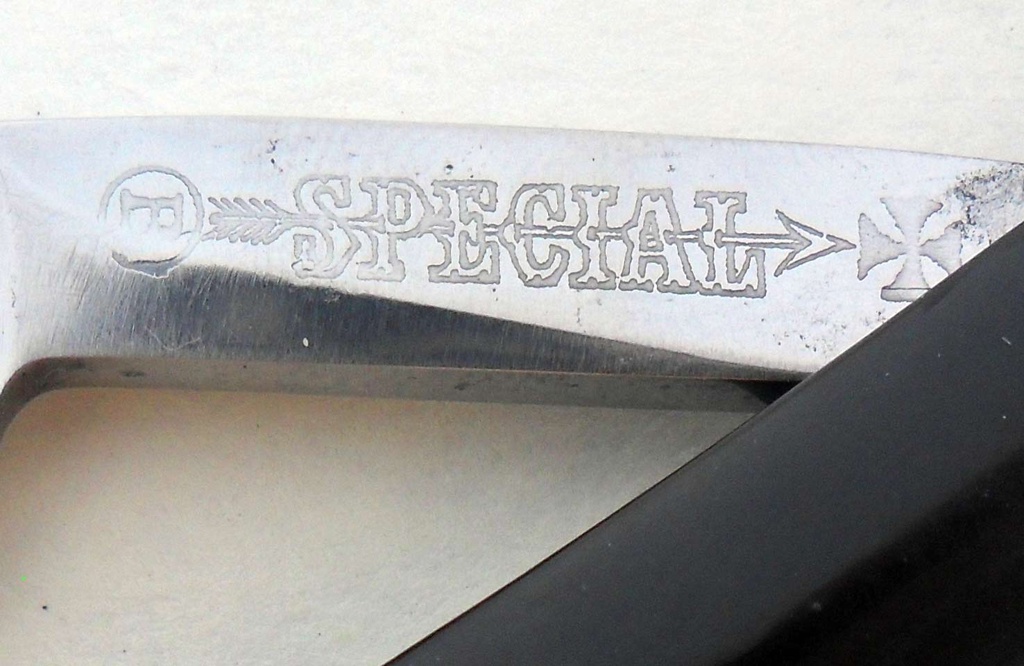 Надпись на обратной стороне эрля: SPECIAL Сведения о производителе: http://britva.ru/forum/viewtopic.php?f=28&t=1663" onclick="window.open(this.href);return false; Ручка - эбонит. Ширина бритвы 16,5 мм, толщина обуха 4,5 мм. Заточена и полностью готова к бритью.