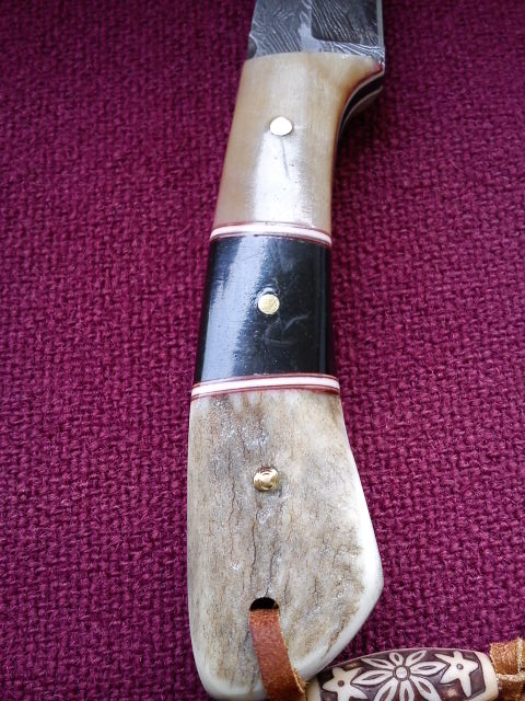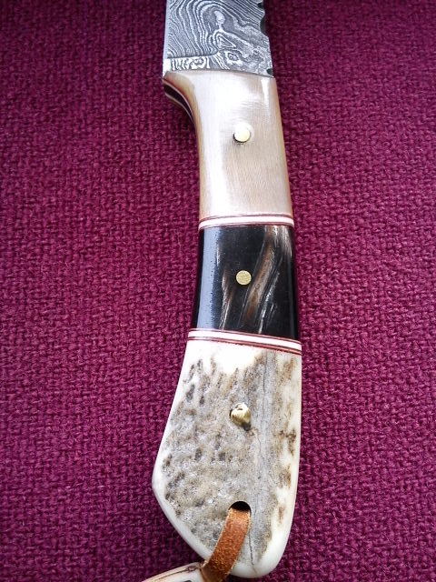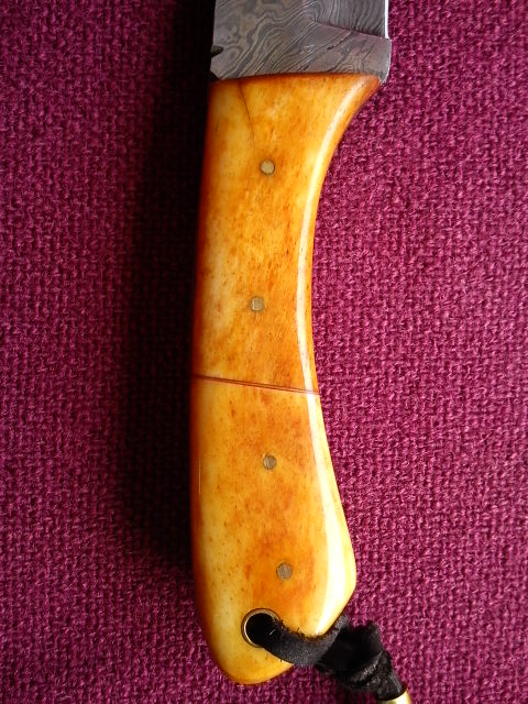 Re: Продам нож.Дамасская сталь.Продам нож.Новый.Общая длина 22,5 см.Длина лезвия 11,5 см,длина ручки 11 см.Вес 260 грамм.Ручка из рога буйвола и еще чего-то(lime honey horn)..не могу перевести
