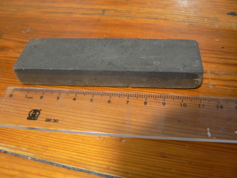 Re: Что за камень?Вряд ли кто ни будь скажет что это за камень, но выбрасывать не надо в любом случае. Нужно одну сторону, поверхность рабочую, выровнять и довести на стекле с порошком карбида кремния, ну или на шкурке на худой конец на стекле опять же, тогда будет видно и поверхность, текстуру, возможно будет можно будет определить что за камень и попробовать можно будет как точит, а в таком состоянии как сейчас он не пригоден к использованию.