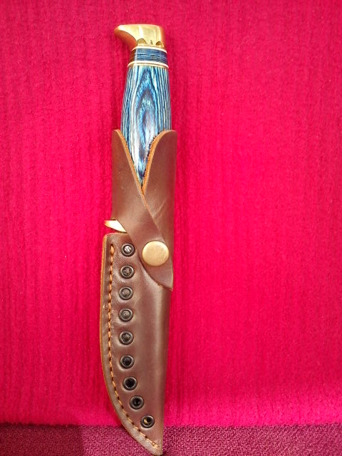 Re: Продам нож.Дамасская сталь.Продам охтничий нож.Новый.Размеры ...общая длина 23 см,длина лезвия 11.5 см.Вес 235 грамм.Чехол из коровьей шкуры.Ручка Blue Pakka Wood(что за дерево не знаю
