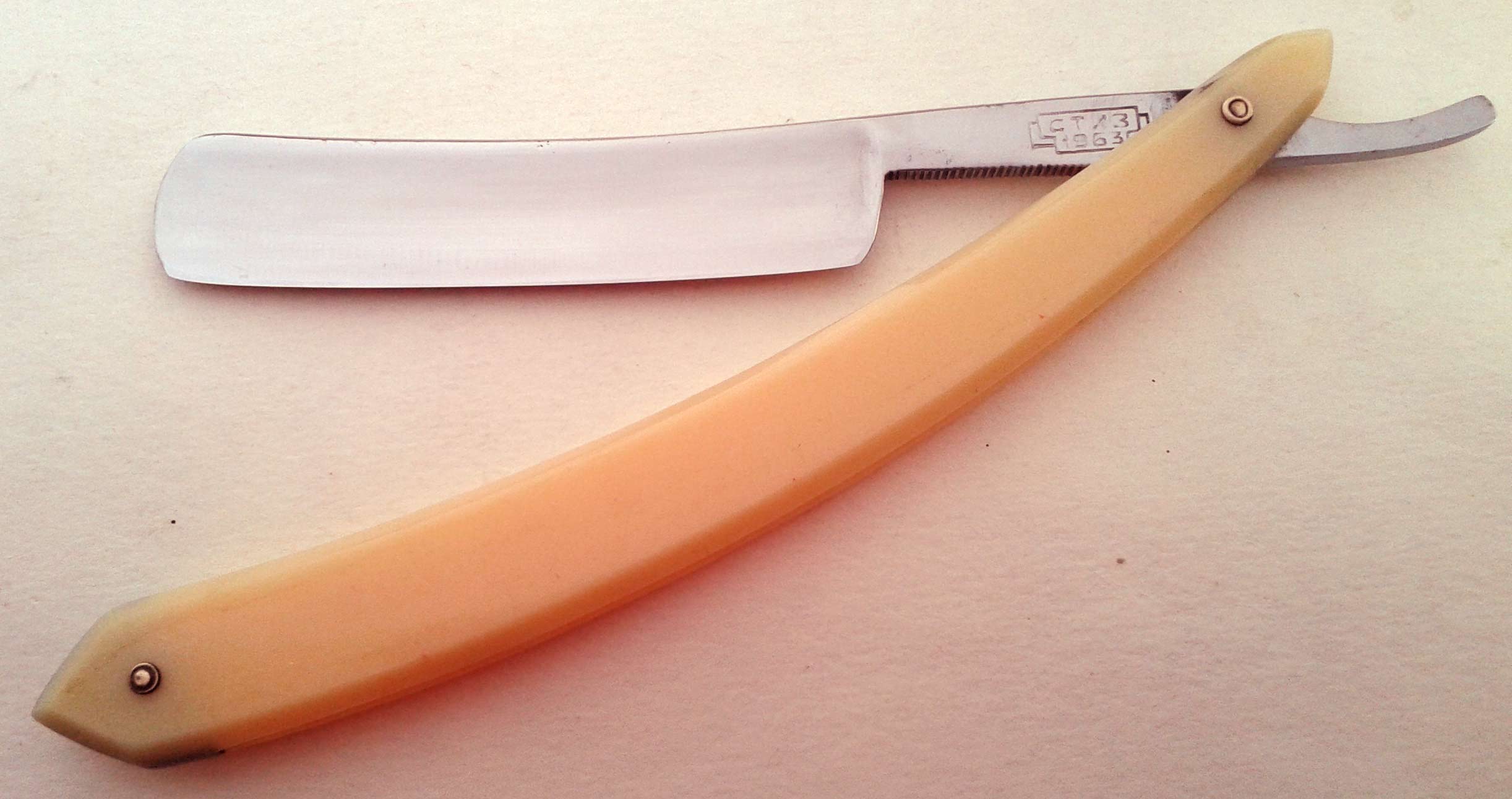 Сведения о производителе: http://www.britva.ru/forum/viewtopic.php?f=28&t=1136" onclick="window.open(this.href);return false; Ручка - целлулоид (имитация слоновой кости), в отличном состоянии. Вчера для пробы побрился этой бритвой в сравнении с вышепредставленной шведкой - лучшие рекомендации, бреет чисто, комфортно и асболютно бесшумно, смело могу рекомендовать к покупке. Естесственно, заточена и полностью готова к бритью. Ширина полотна 17.5 мм, толщина в обушке 4.5 мм.