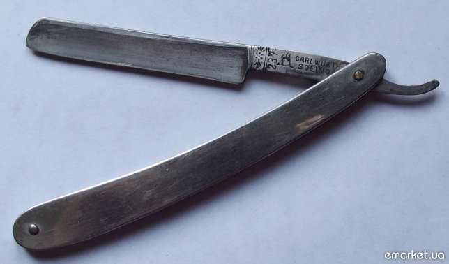 Произведена - до 1945 г.Вогнутость - 1/1. Легендарная старая немецкая углеродистая сталь. Незначительная коррозия. Ассоциации: пение, бритье, ритуал, нанотехнология, пена, гель, помазок, две ступеньки, заточка, острота, женская любовь, свежесть, гладкость, гигиена, секс, мужественность, подарок,
