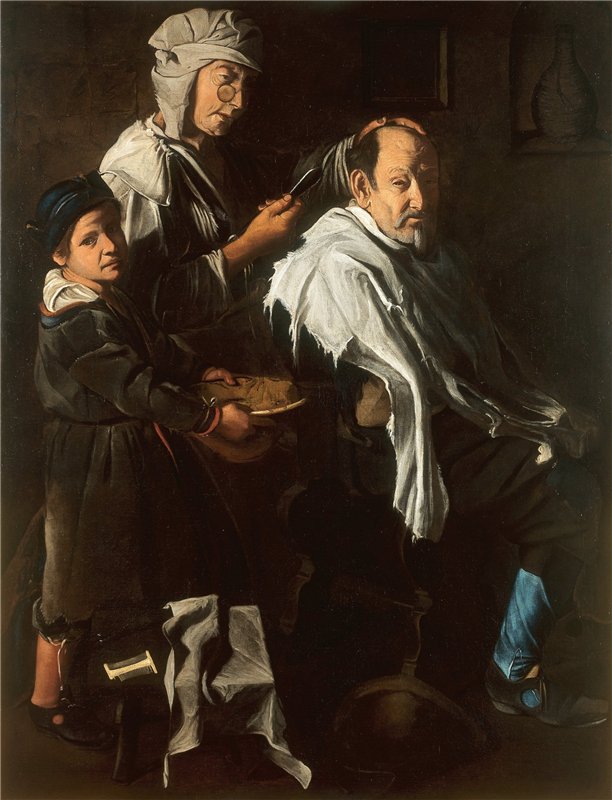 Re: Опасная бритва в искусстве ( картины, рисунки, фото, тату) Серия художественных работ о парикмахерах, цирюльниках и брадобреях! Карл Блох Уличный цирюльник 1868 г. Часть третья Show Адриан Ян ван Остаде Извлечение парикмахером зуба 1630-35 г.г.