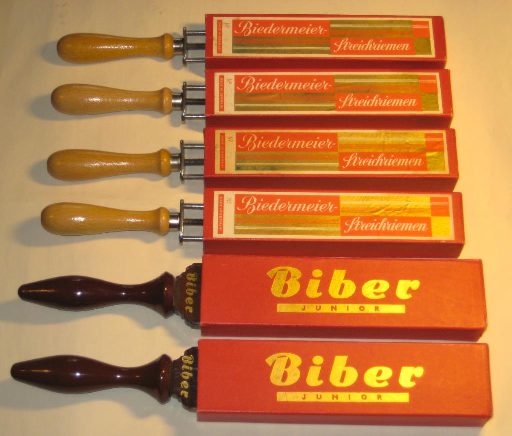 http://www.britva.ru/forum/viewtopic.ph ... ead#unread" onclick="window.open(this.href);return false; форумчанин Геннадий разместил видео где не рекомендуют т.н. натяжные ремни. И автор видео грозится выкинуть их в мусор... А я, как последний лох, купил в том году по 5 евро таких ремней и ещё 2 (тоже, наверное "ховно", если спросить мнение автора того видео). Ремни-то УЗКИЕ, да и с пастой (на 4-х), и пасту нанес ДУРАК-производитель из Германии, да и с размером оплошал, видно с кожей проблемы, вся кончилась !? Вот, на Ваш суд, дорогие друзья, мои приобретения (не виноват, по незнанке деньги вбухал в мусорку...) Добавлено спустя 6 минут 5 секунд: Размеры рабочей части натяжных ремней: 20см х 4 см, высота 2,5см. Ремень на деревянной раме: с одной стороны кожа, а под кожей красный фетр? , с другой мягкое дерево (думаю бальса) с продольными бороздками. В деревянной раме 2 пропила. Размеры рабочей части: 21см х 5см, высота 2,5см.
