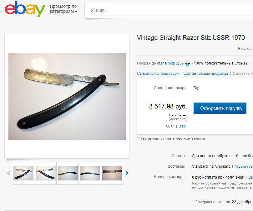 Re: Аукционы: плагиат, развод и "великолепные" описанияolegpan, учись торговать! Vintage Straight Razor Stiz USSR 1970 3 517,98 руб.