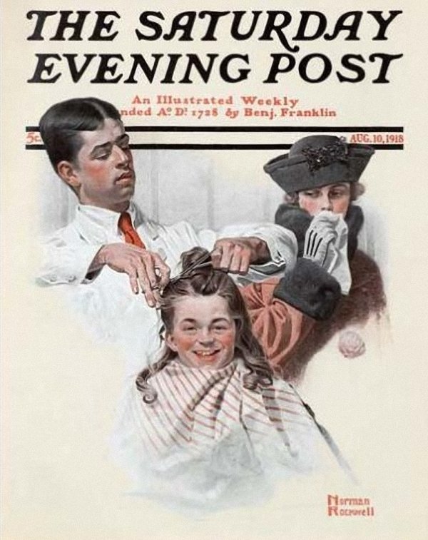 Norman Rockwell Haircut Boy At Barbor. 1918 г.