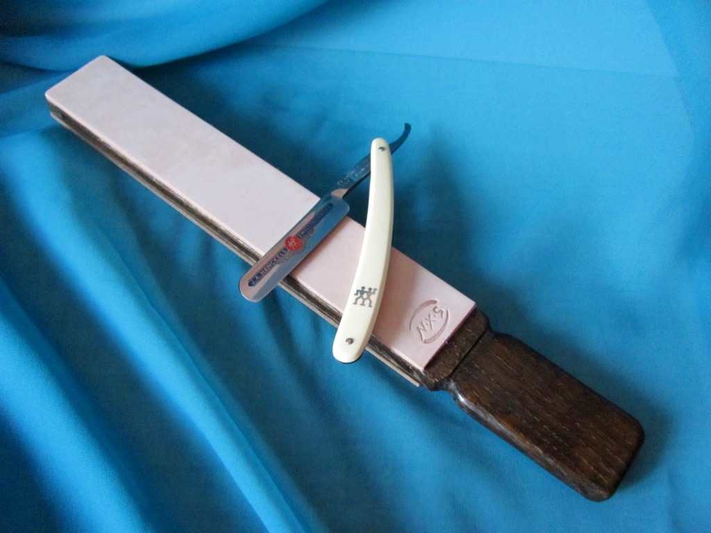 Материал: Древо-дуб, поверхность обработана карнаубским воском. Кожа: чистая сторона-американская корова, пастированная -корова СССР. Размеры: длина рабочей поверхности 27 см, ширина 4.5 см. Цена : 40 евро. Продан Доставка: Украина за мой счет, СНГ + 5 евро.