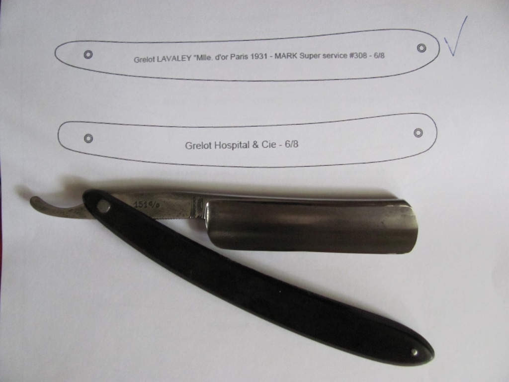Старая ручка была покусана грызунами, полотно было грустно улыбчивым. Было принято решение одеть достойную бритву в копию оригинальной ручки и привести в порядок полотно. Кстати, сталь у Grelot действительно прекрасна. Получил огромное удовольствие при выполнение этого заказа. покусанная ручка Show