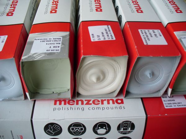 Вывод: металл снимает хуже пасты ГОИ. На кругах и ремнях держится значительно хуже, нужно предварительно обрабатывать бензином и все равно с ремня частично сыплется при сгибах оного. Зерна не кубические как у ГОИ, а округлые, поэтому больше заглаживает поверхность, чем режет. Размер зерна 0,2-0,5 мкм. Запах не айс имхо.